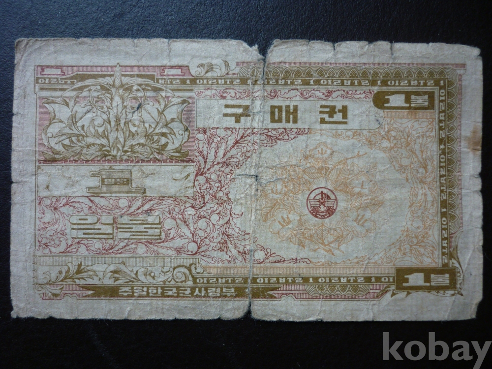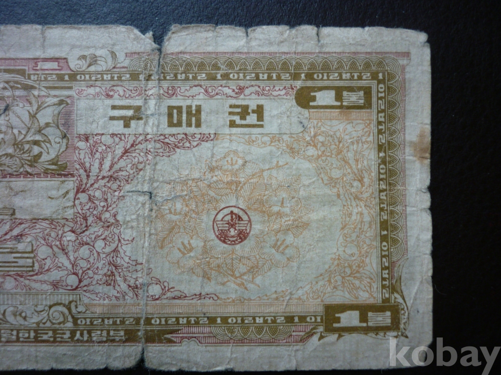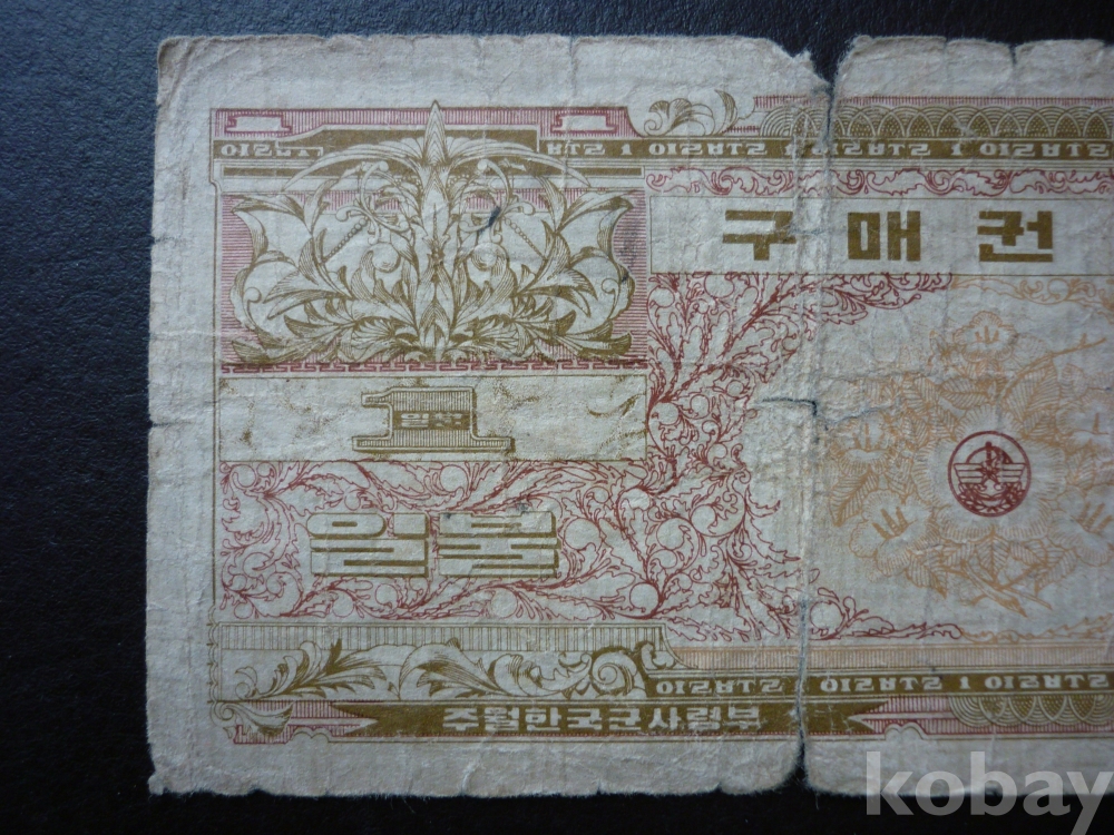 주월한국군사령부 발행의 <1불 구매권>