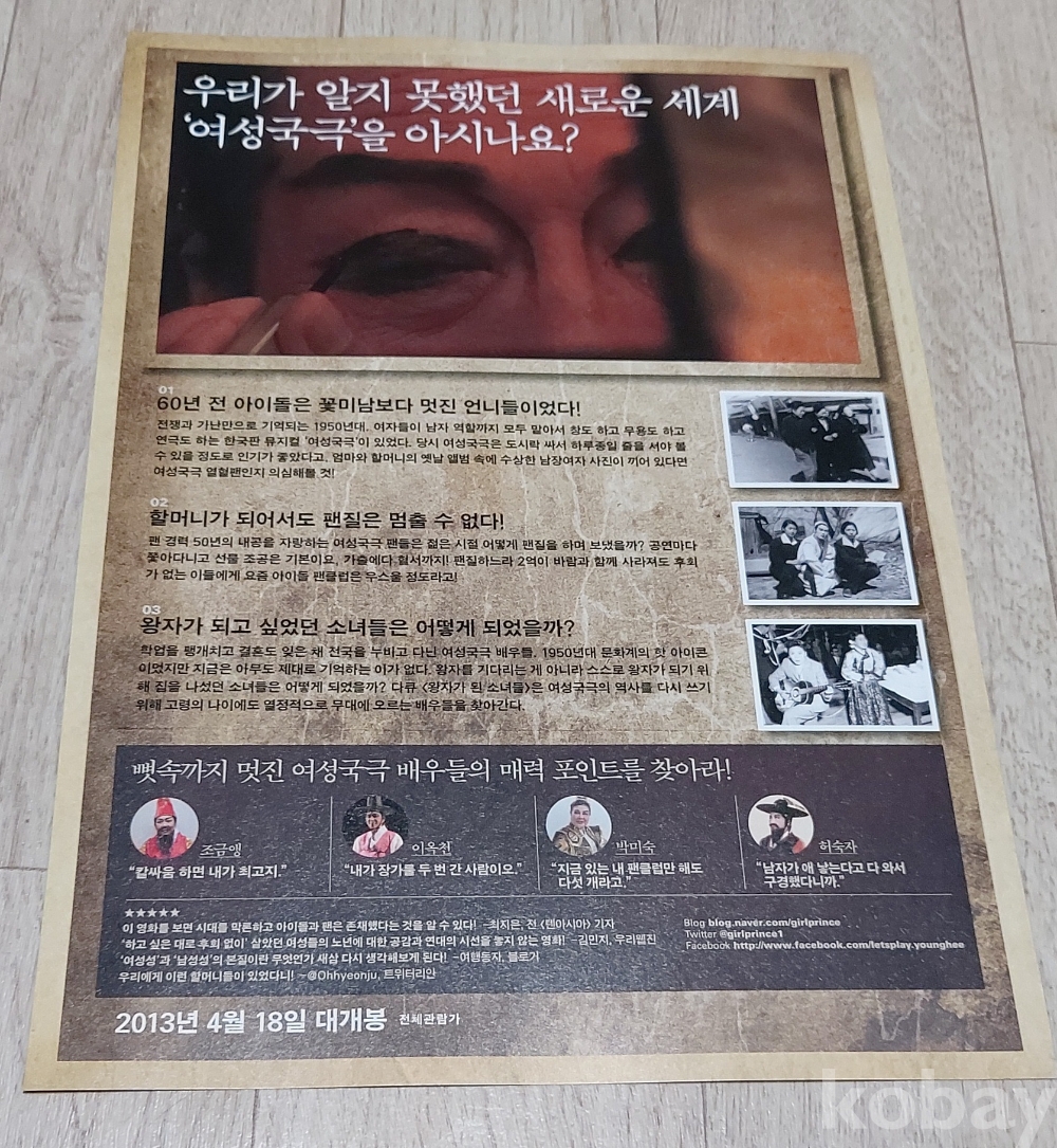 2000년대부터나온 전단지 A4사이즈 한국영화 왕자가된소녀들 고전 근현대사 근대사 추억 문방구 문구 희귀