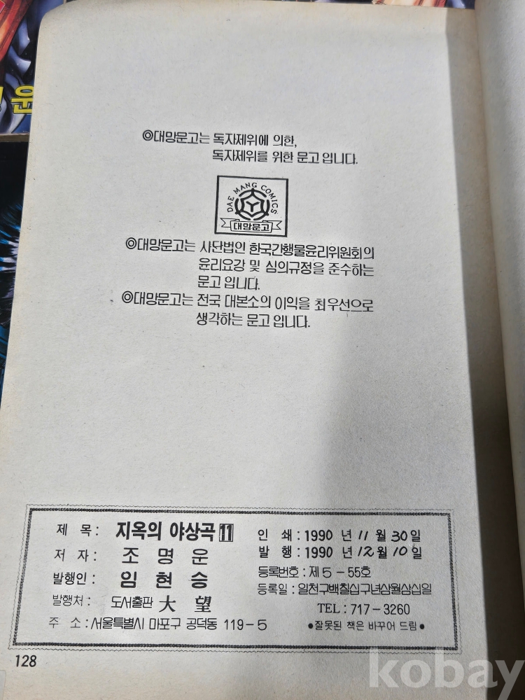 80-90년대 추억의 만화방 = 청소년 만화 = 조명운 글.그림 = 지옥의 야상곡 11권 완질