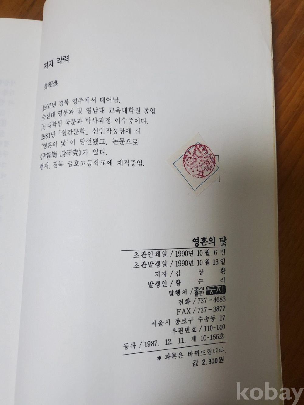 1. 영혼의 닻, 김상환, 도서출판 둥지, 1990년, 127쪽, 저자 서명본, 상태 상, 사진 참조