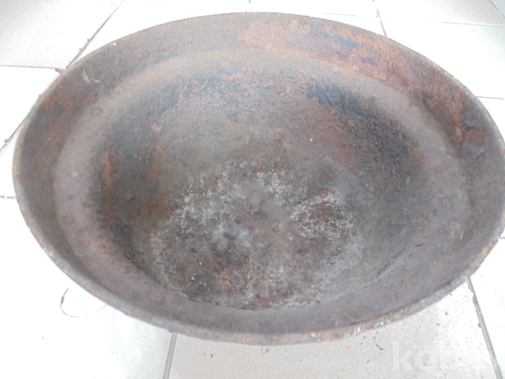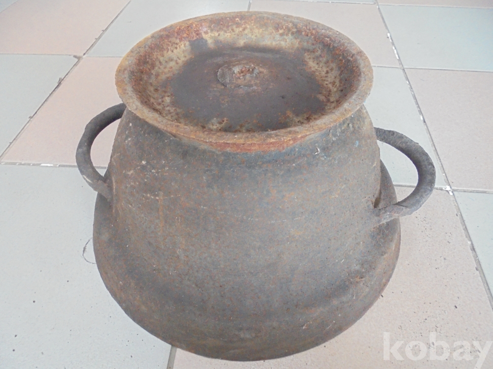 옛날 불땐숯불로 장도끓이던 부엌용으로 불땐숯불도덮어서끄는 현재도 다용도사용하는 아구리 넗은 무거운 무쇠화로