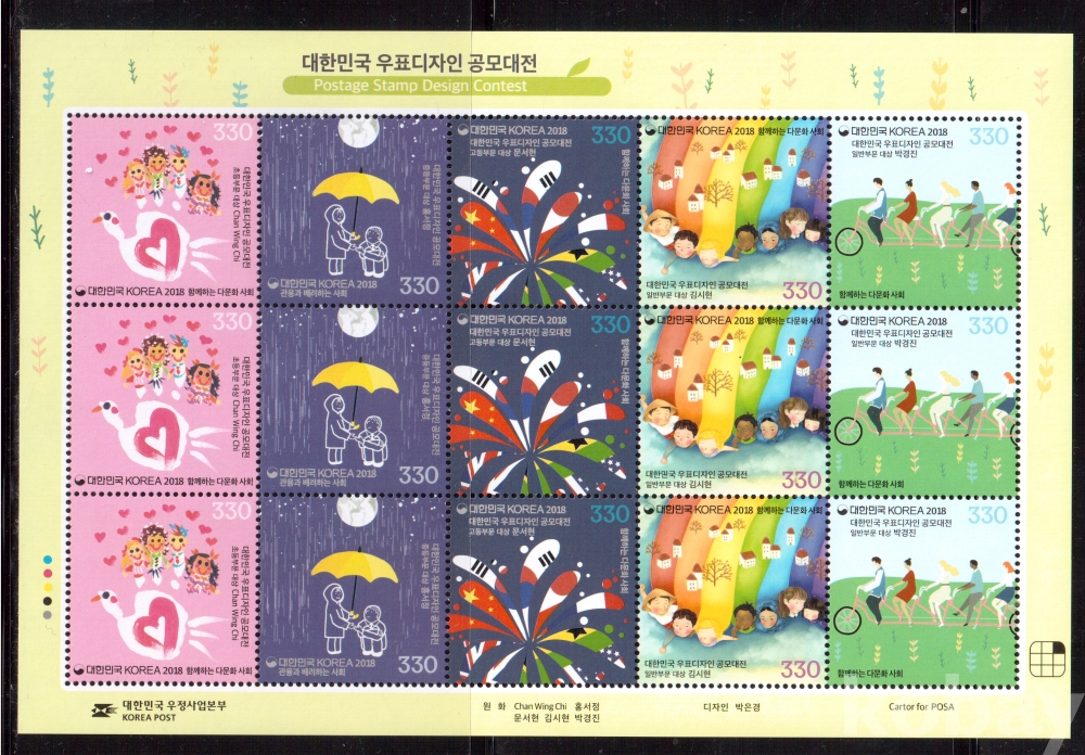 (한국전지) 2018.2.22 대한민국 우표디자인 공모대전 sheet of 15 MNH
