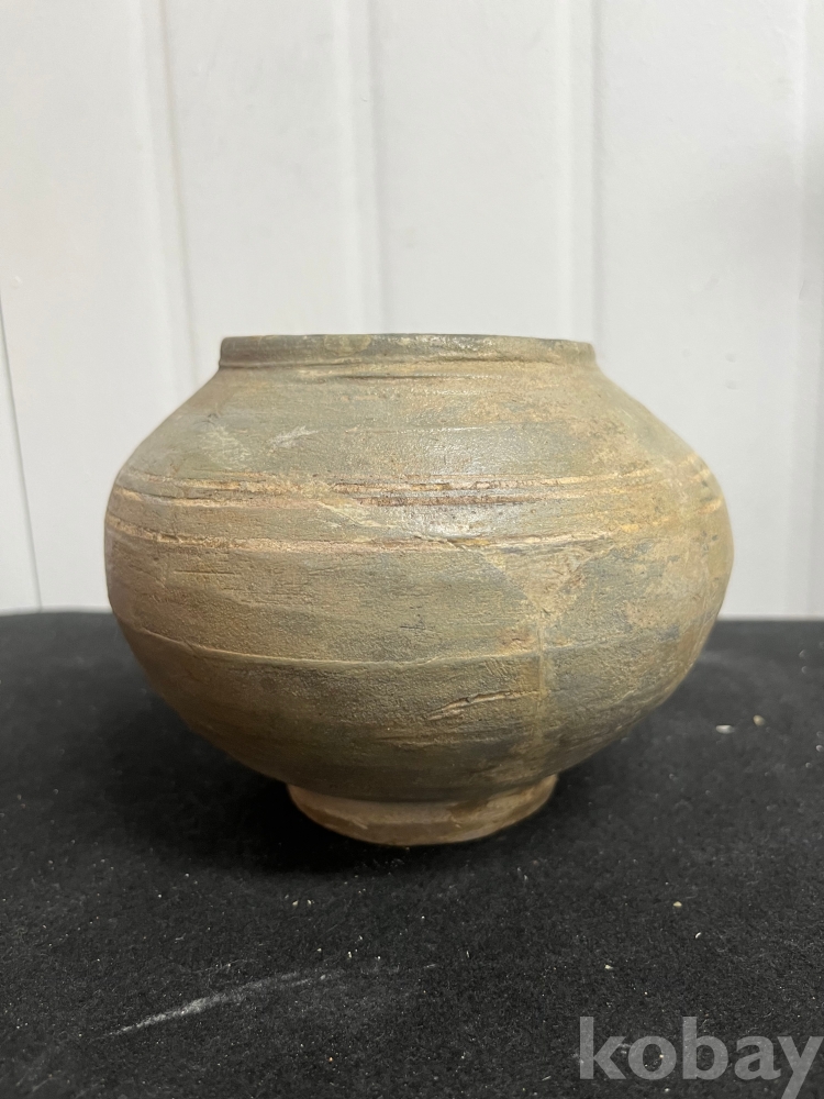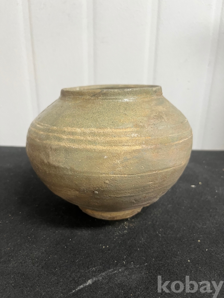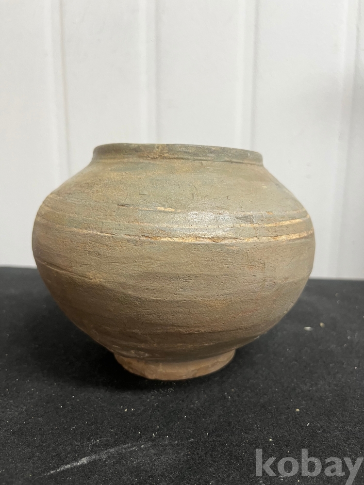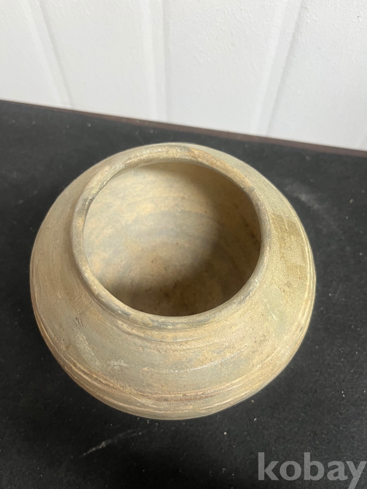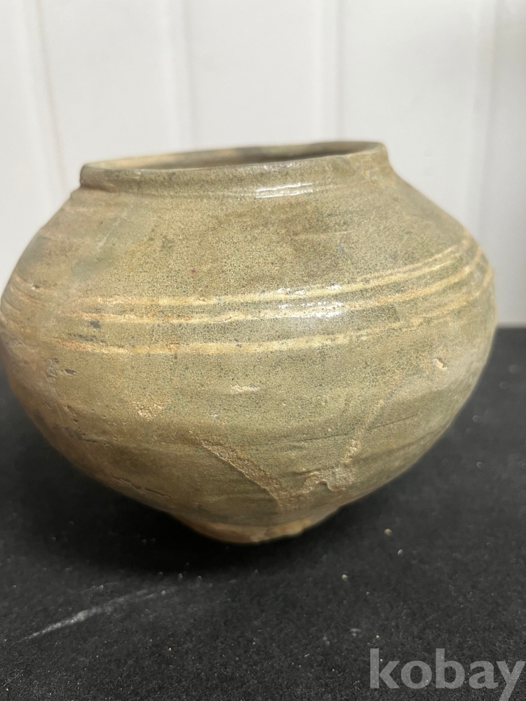 물레 자국과 담녹회색 유약이 어우러져 소박한 미감을 보여주는 작품입니다.