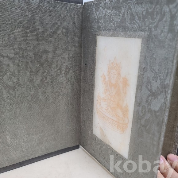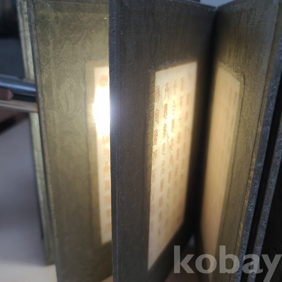 불가의 귀한 경전을 옥판에 금채로 적은 책입니다. 나무 표장에 음각으로 무늬를 새겼습니다. 옥과 나무로 이루어진 매우 묵직한 옥사경 소개합니다