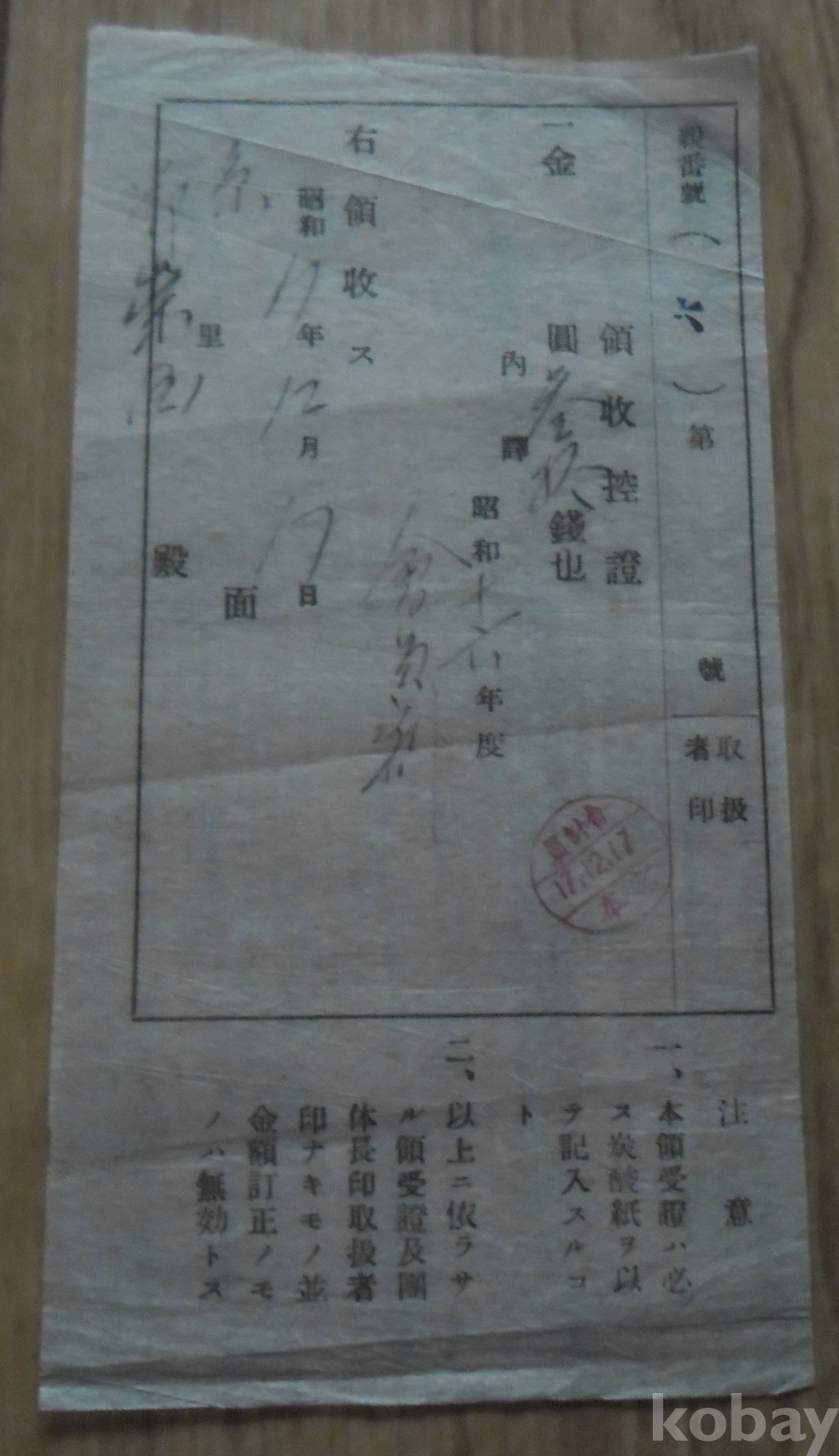 소화17년 발행 영수증