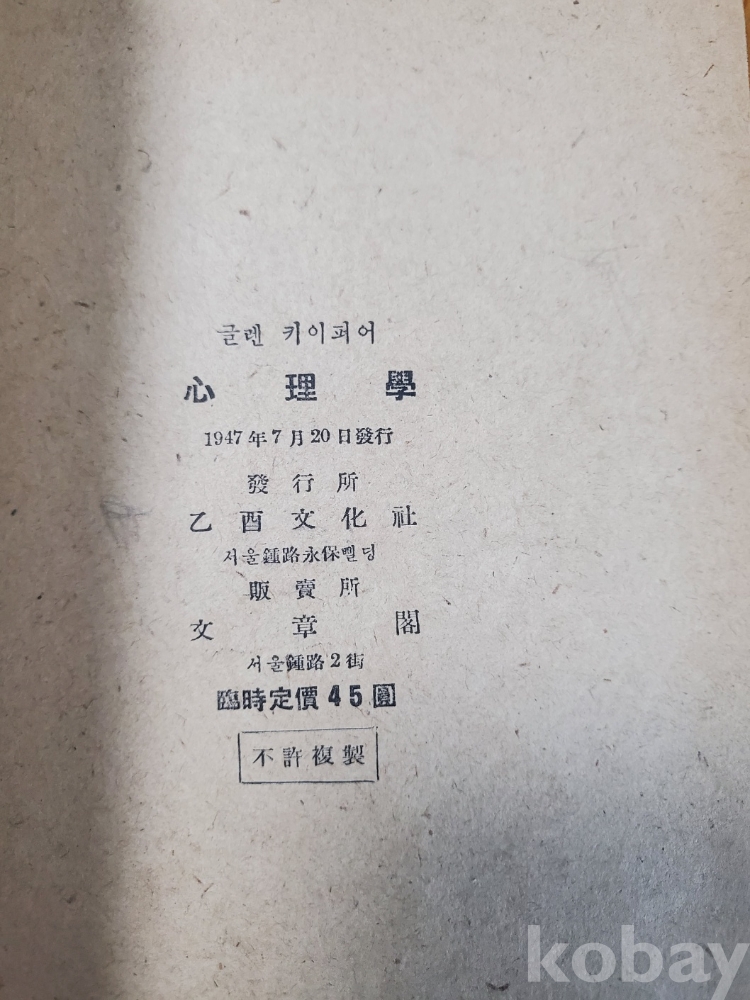 1. 심리학, 글렌 키이퍼어, 을유문화사, 1947년, 54쪽, 상태 상, 사진 참조
