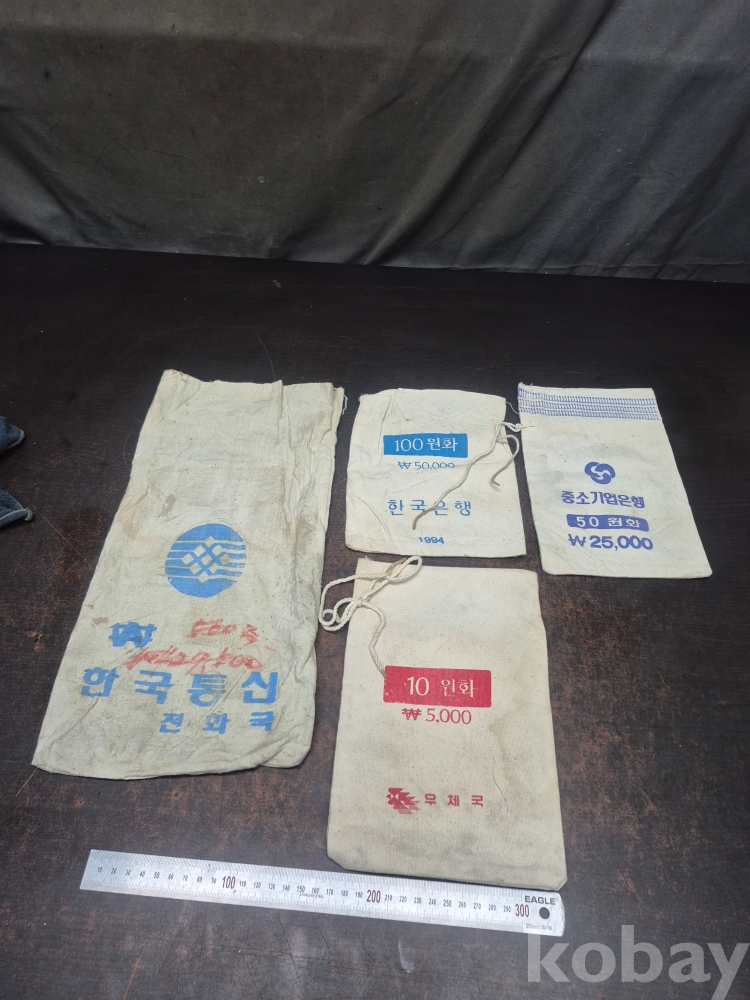 1990년대 한국통신 공중전화 동전 회수함 한국은행 100원 천봉투 중소기업은행 50원 천 봉투 우체국 10원 천봉투 4점 일괄 20*40