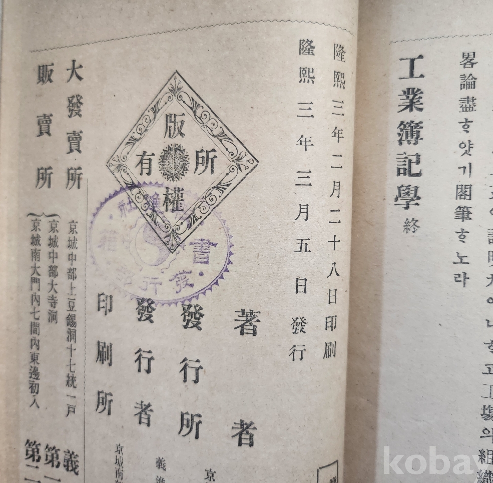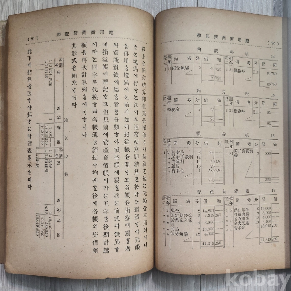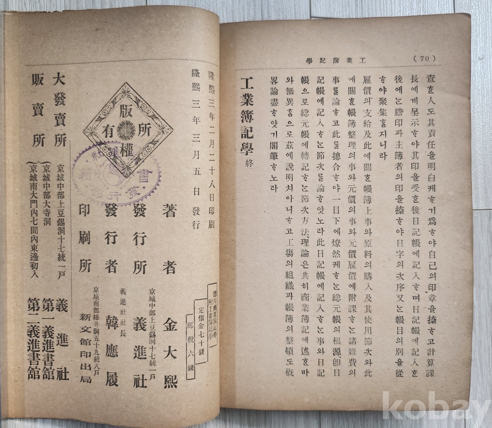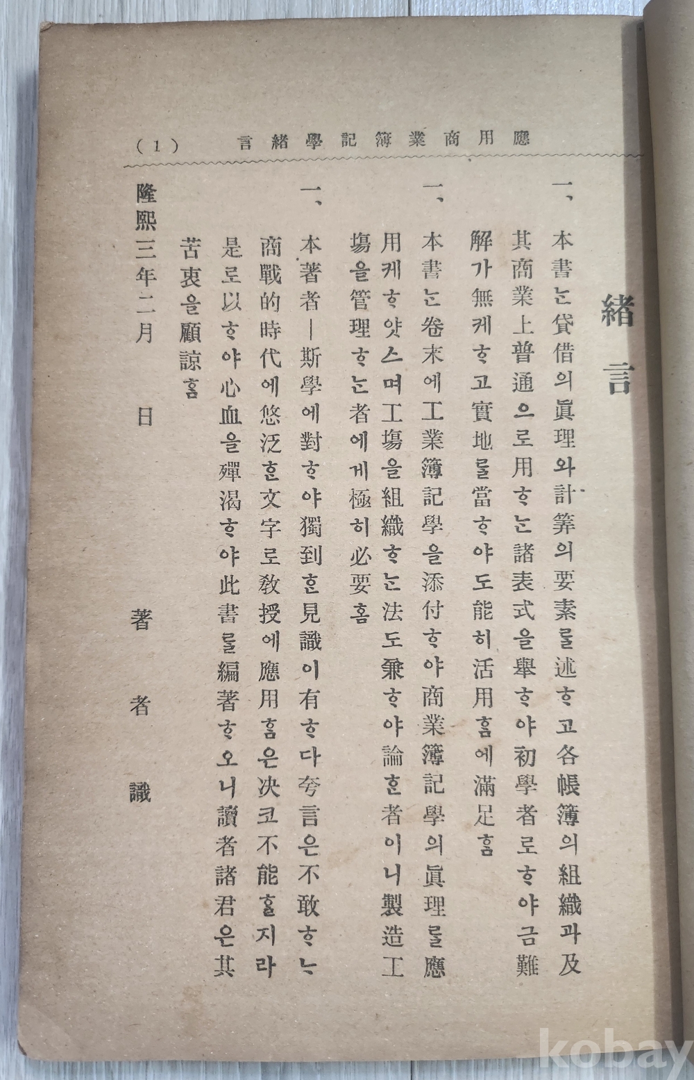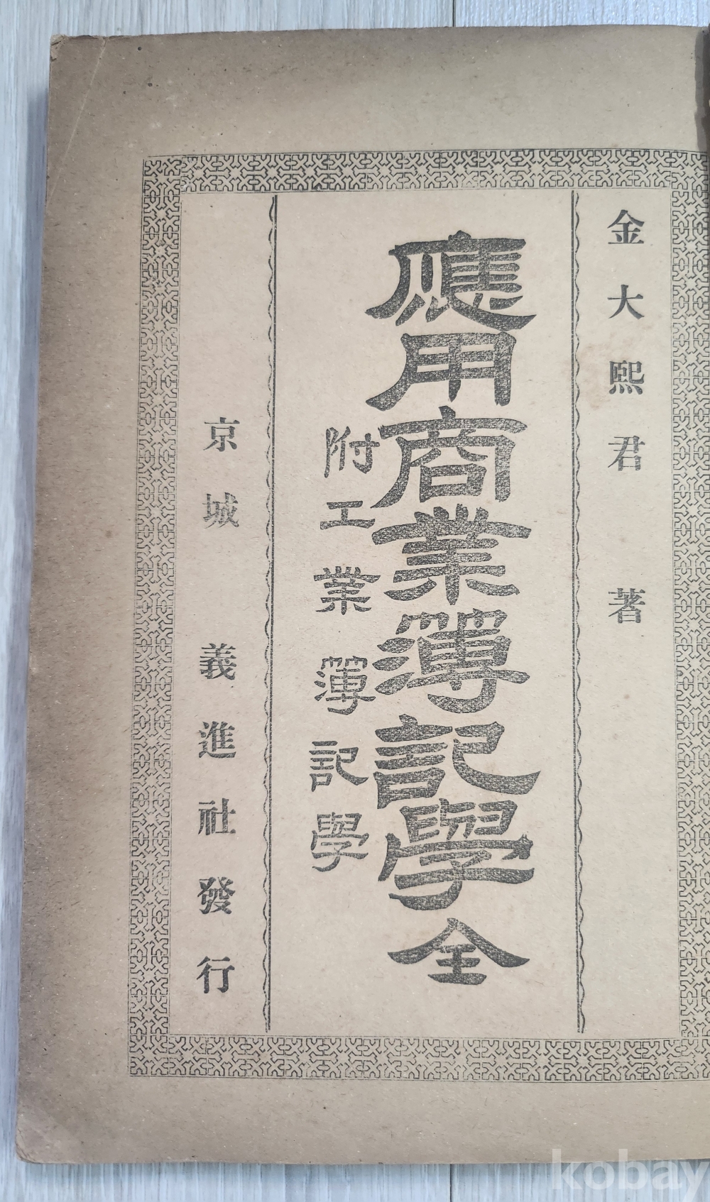 융희3년 1909년 응용상업부기학 (초간본) 1책 입니다 구한말 수학에 관한귀한책. 김대희가 저술하고 의진사에서 발행한 구한말 대표적인 서양식부기관련 단행본. 낙질파본 없이 상태양호 합니다