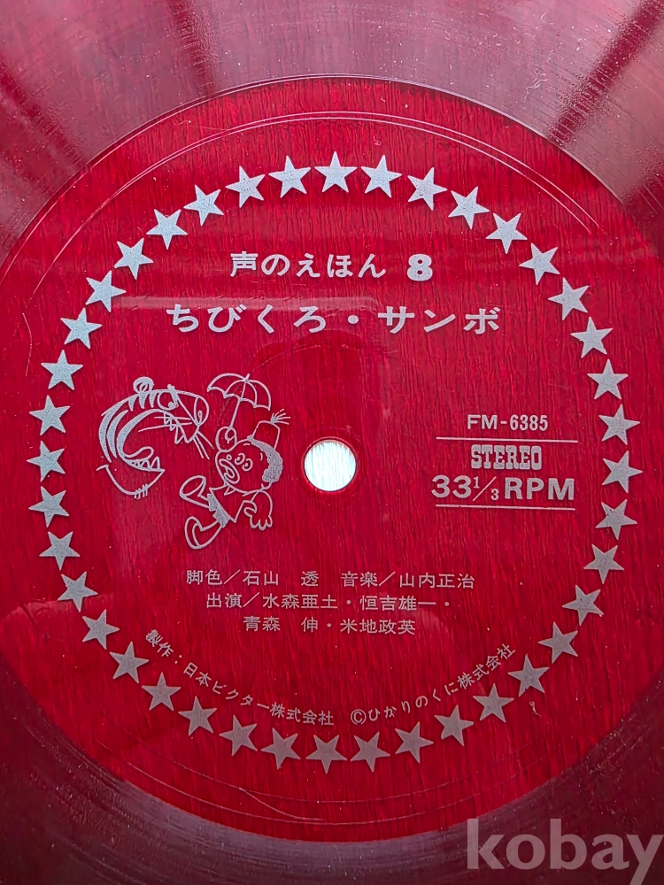 1960~70년대 일본에서 발행된 '히카리노쿠니 소리의 그림책(ひかりのくに 声のえほん)' 시리즈 중 8권인 <꼬마 검둥이 삼보(ちびくろ・サンボ)>의 소노시트(Sonosheet) 레코드입니다.