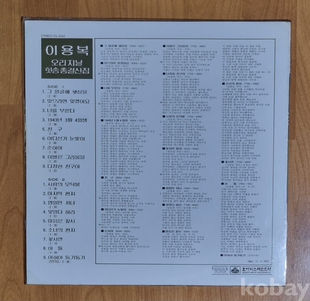 | 제조국 | 한국 | 발매연도 | 1980 |