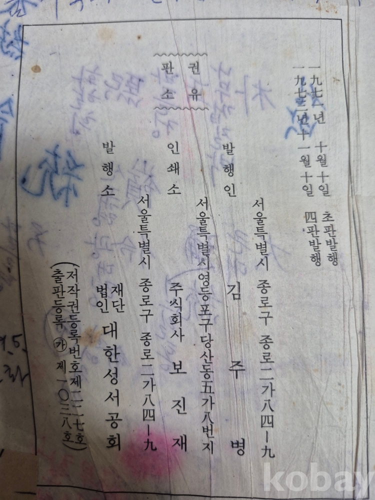 1973년 11월 10 성경전서 대한 성서 공회 겉지는 1956년으로 표기 17*21*6