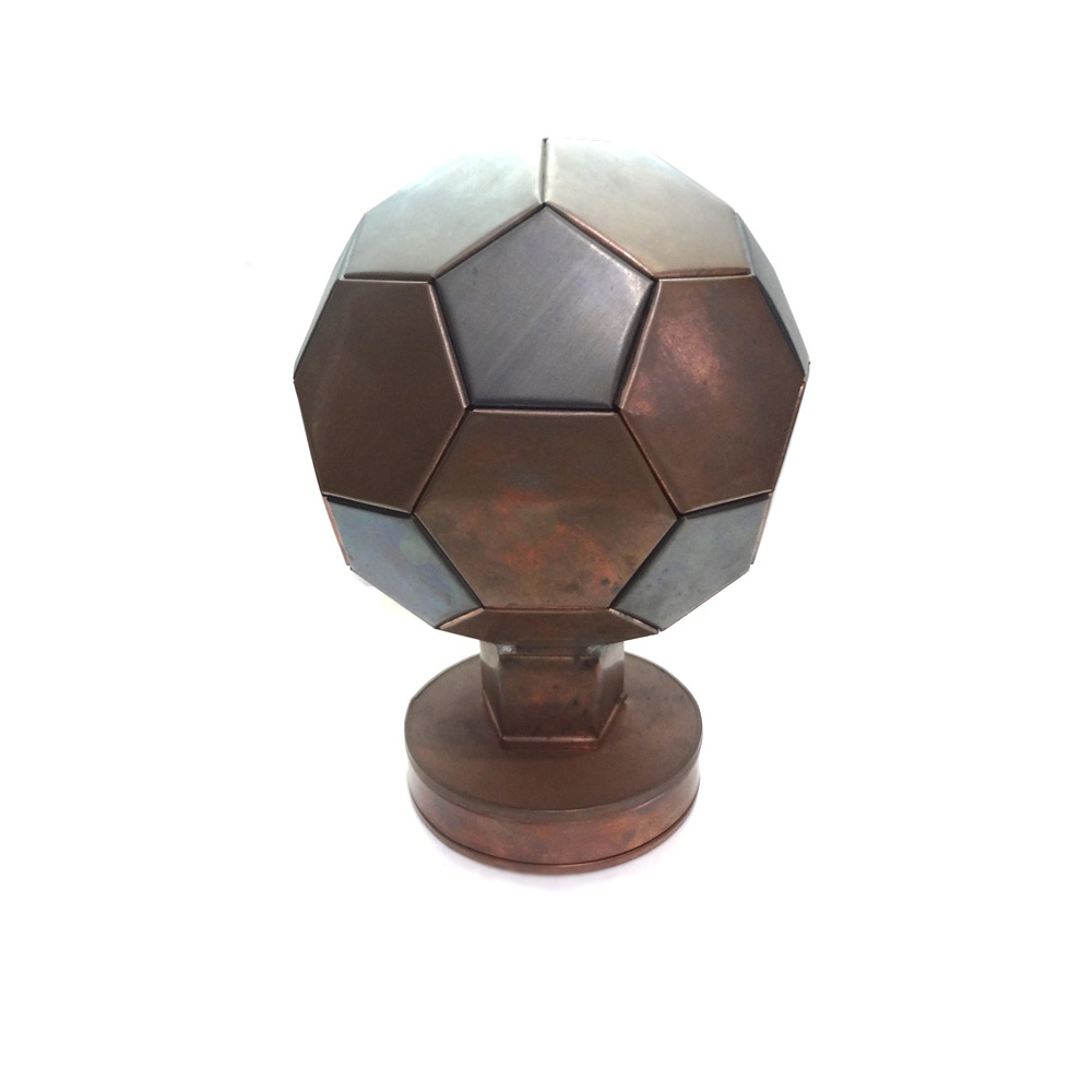 크기는 축구공 만하며 구리판 재질로 만들어진 공예품 입니다.