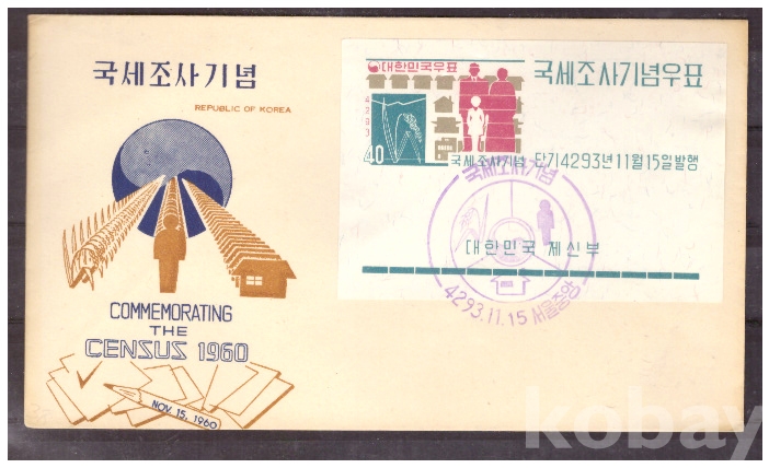 (초일봉피) 1960.11.15 국세조사 기념 s/s 첨부 FDC (서울중앙 4293.11.15)