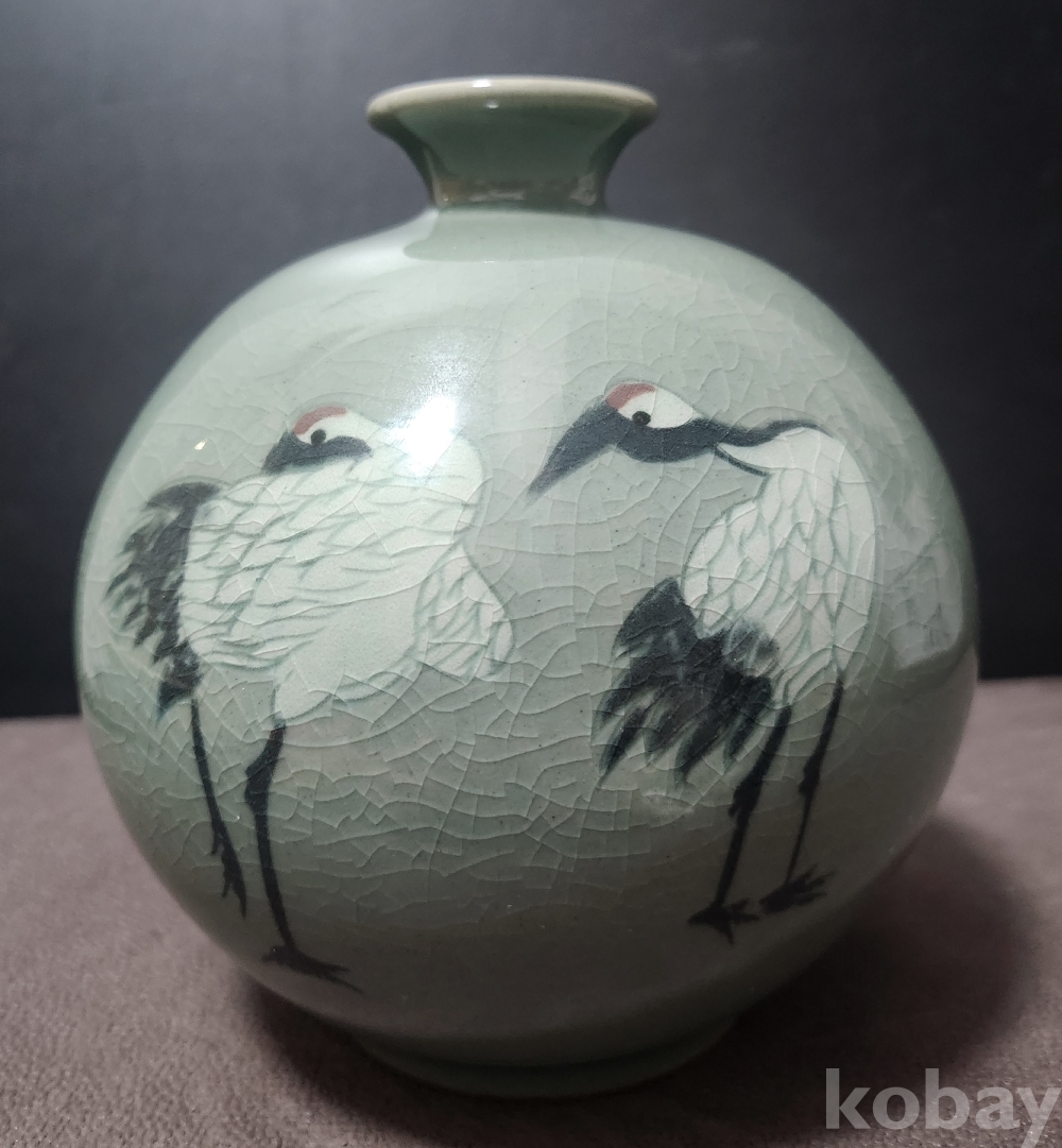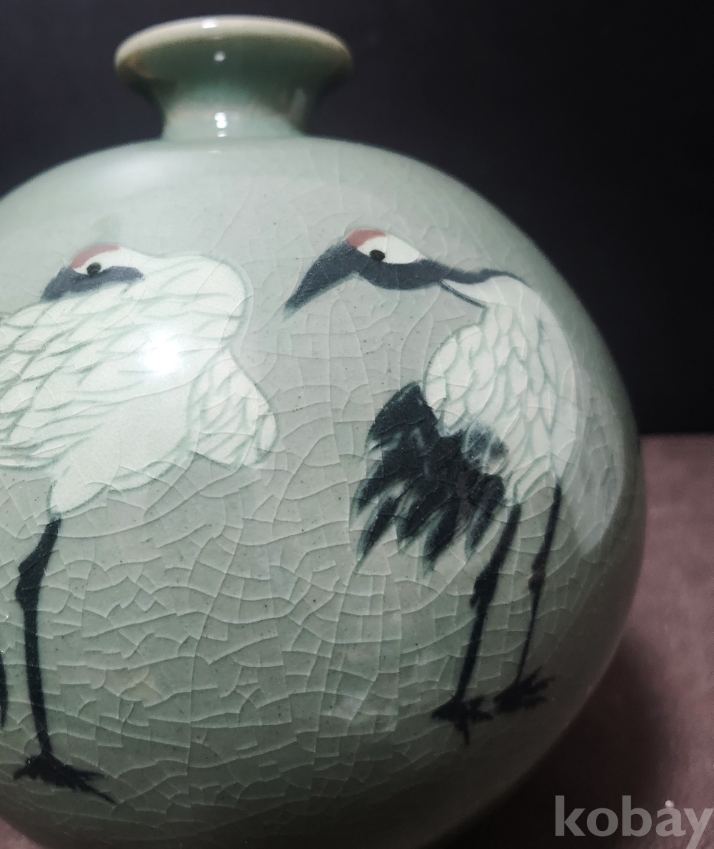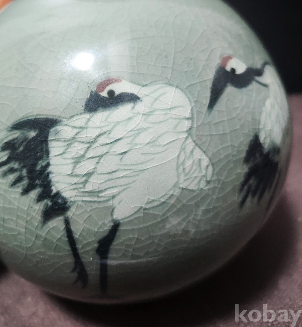 청자상감진사쌍학문호 靑磁象嵌辰沙雙鶴紋壺 < 도예가 수결 작품 >