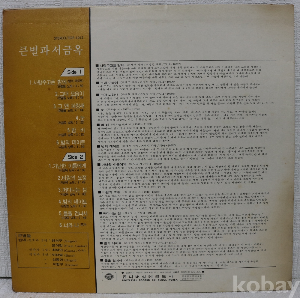 | 자켓상태 | EX : 약간의 마모, 모서리 찢김 존재 | 음반상태 | VG : 생활 기스 다수, 가벼운 노이즈 존재 | 발매정보 | 초반 | 가사지여부 | 유 |