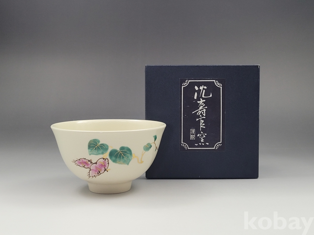 ★ (일본 현지 발송) 사츠마 야키 신주칸 오색 채문 다완. 높이 약 7.4cm, 폭 약 12.6cm 薩摩焼 沈壽官造 色絵金彩草花文 茶碗 ★