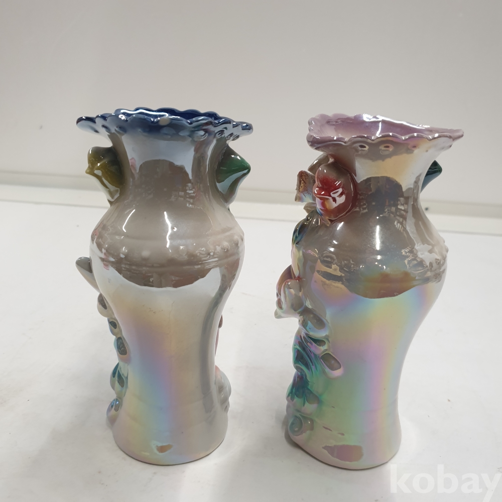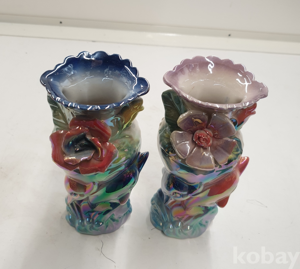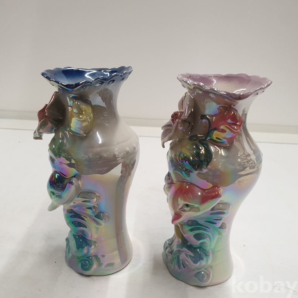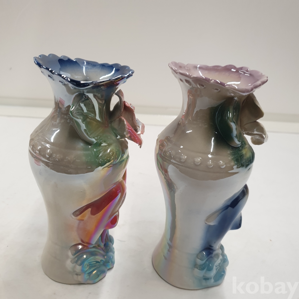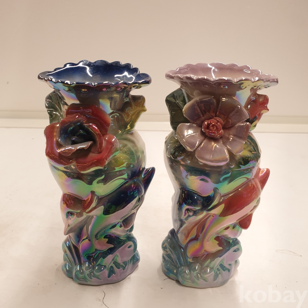 [*천원행복*] S - 3- 0806 돌고래와 꽃이 있는 도자기 화병 2개 (8*18)
