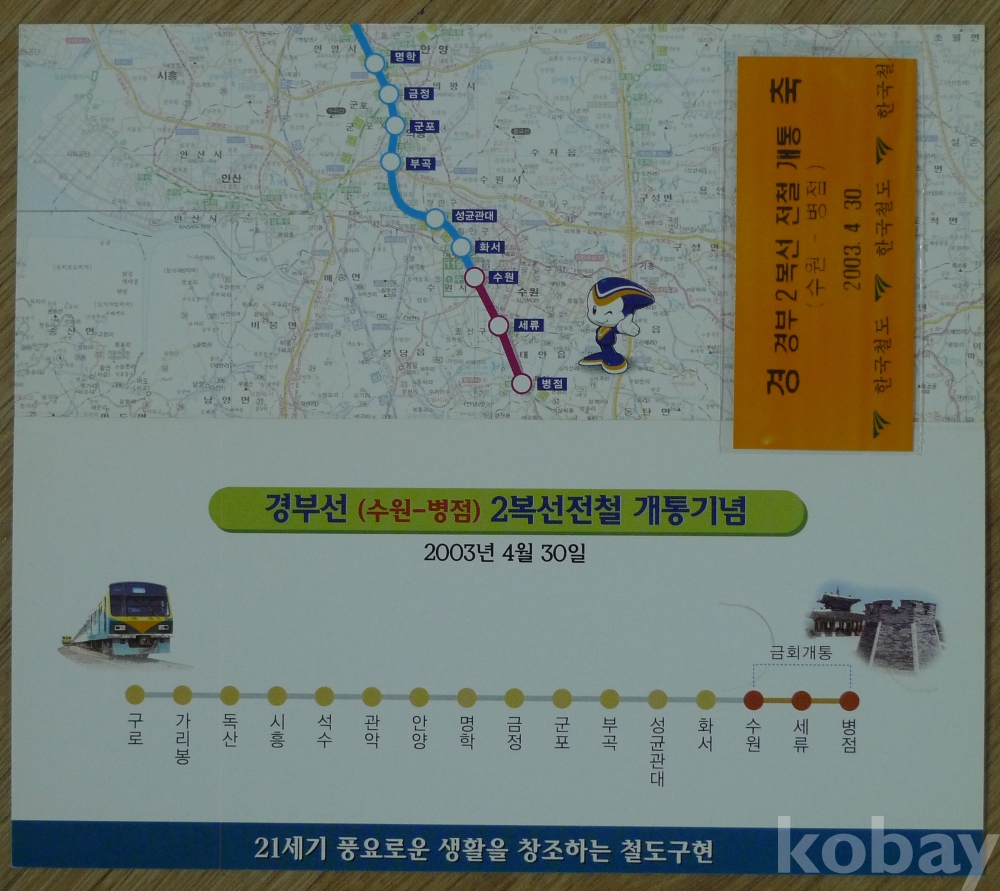 2003년 경부선(수원 - 병점) 2복선 전철 개통 기념 승차권