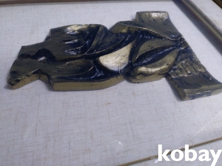 액자 속으로 얼룩은 있지만 액자 상태는 깨끗합니다.
