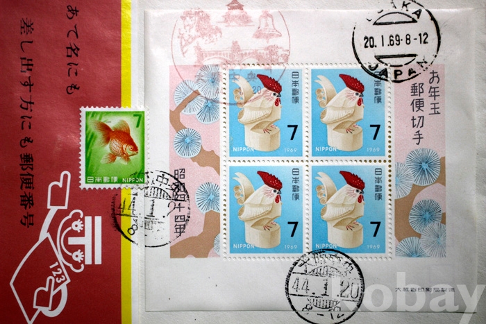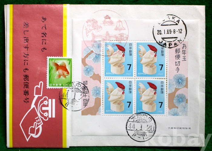 (초일봉피) 1969년 7전 닭도안의 시트가 첨부된 초일봉피 ...