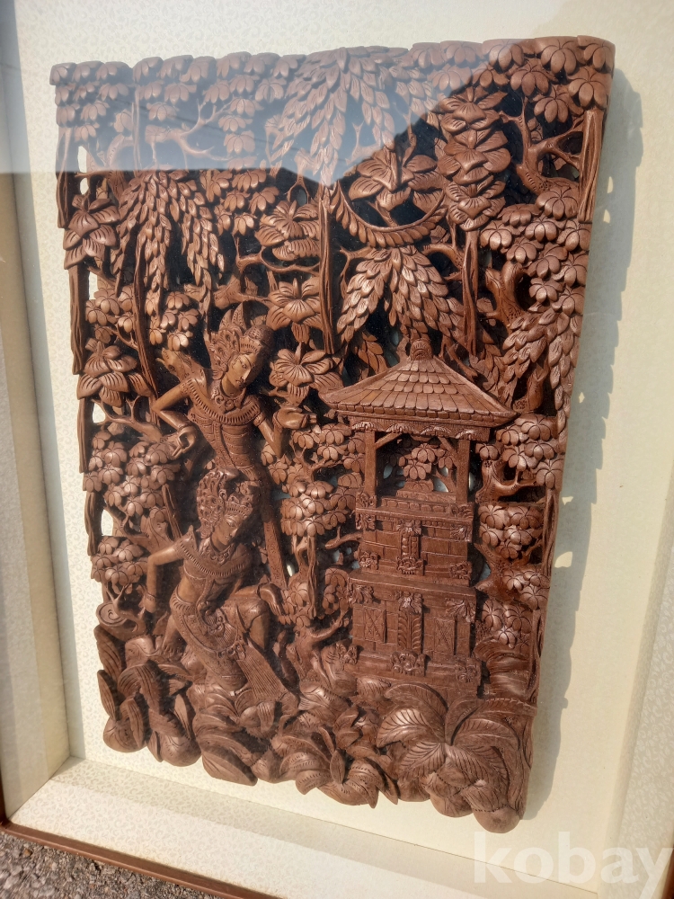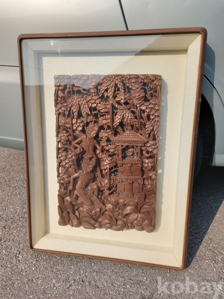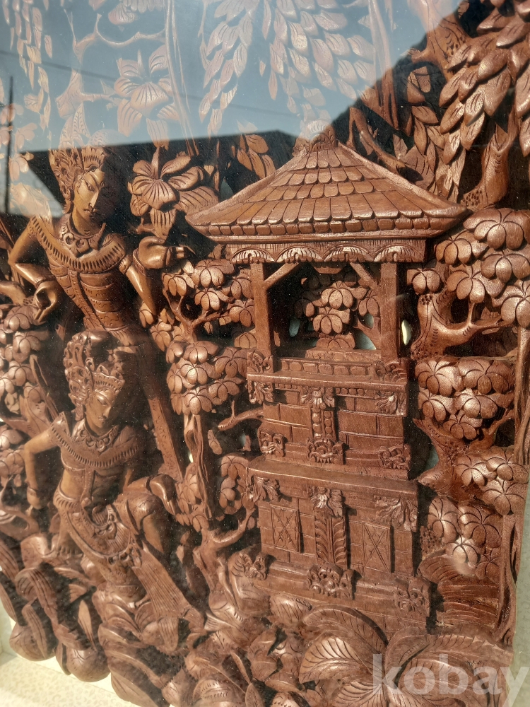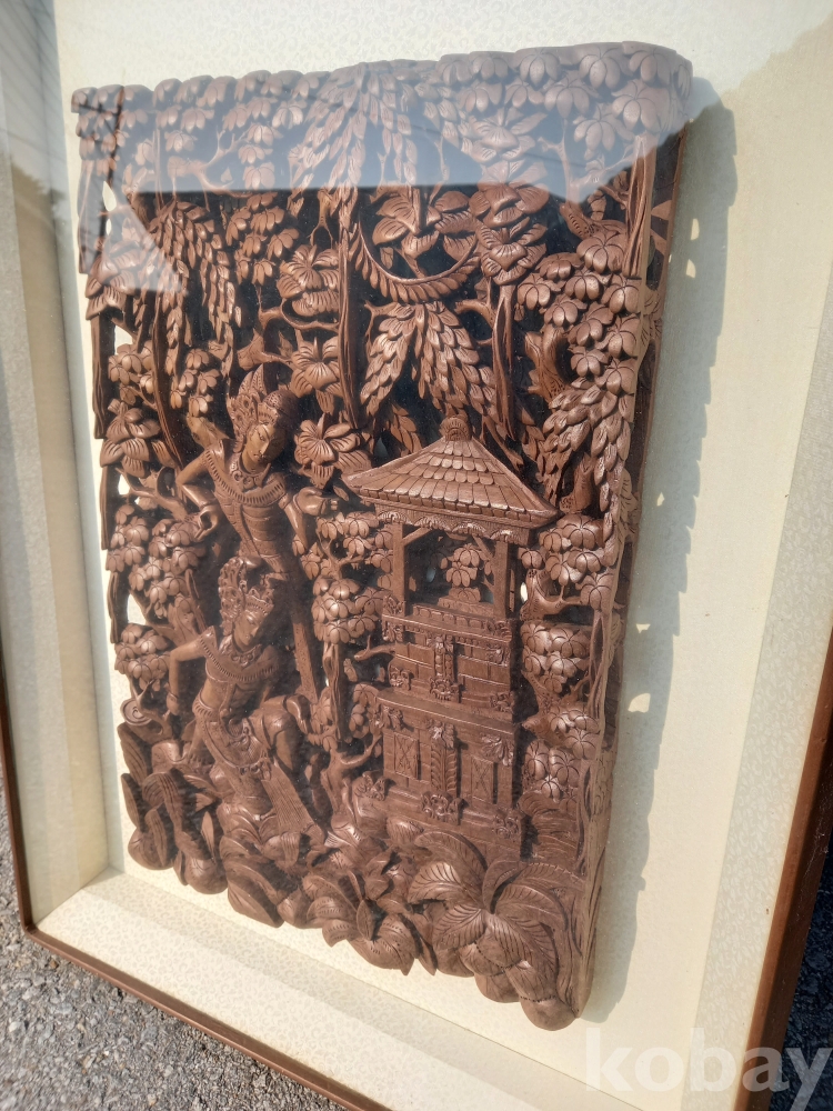두툼한 나무판에 정교한 조각작품 1점 입니다