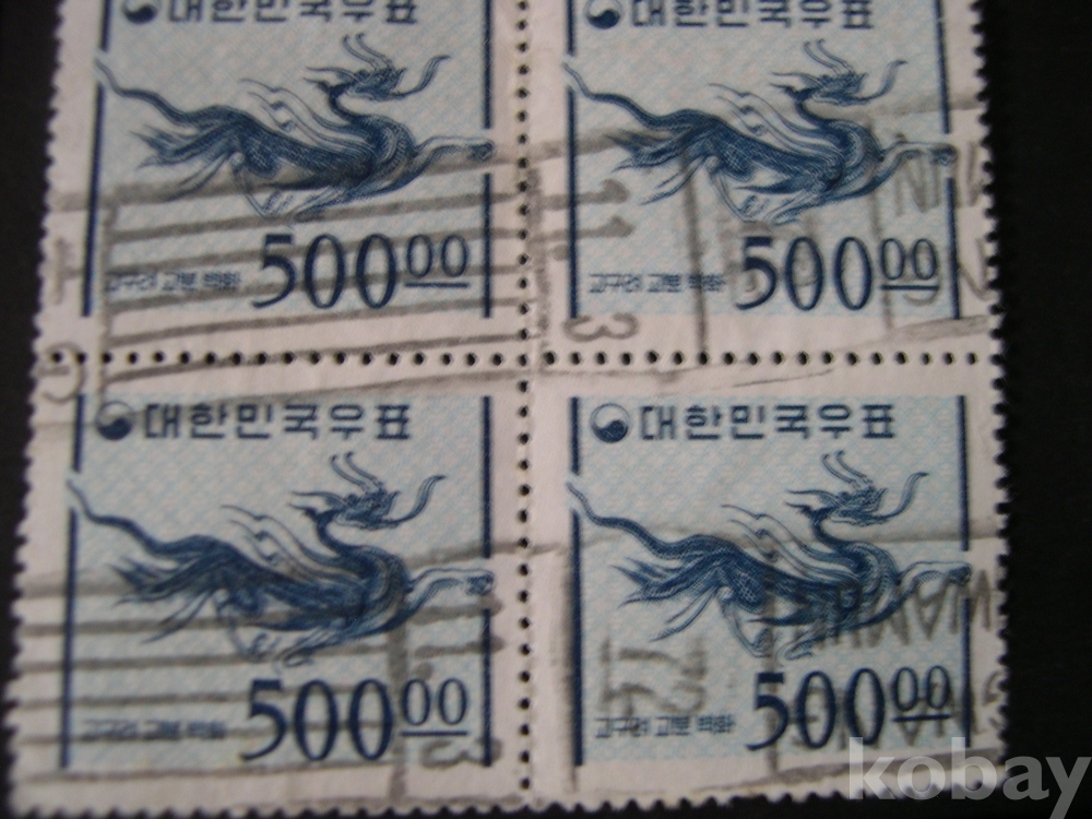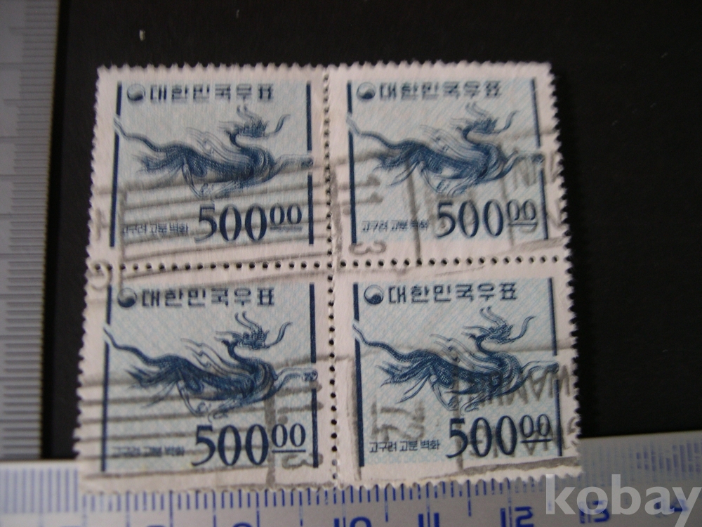 사용제 4매블럭 #34 : 500.00원 고구려 고분벽화 - 1차 국산백지 (1965. 9. 1)