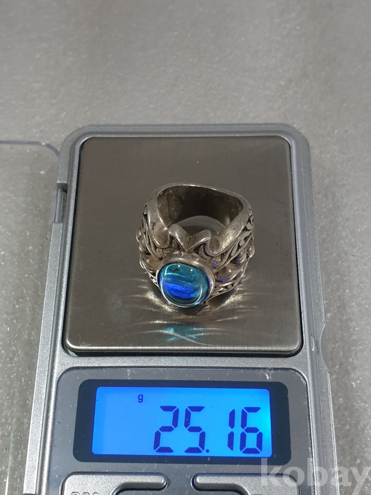 {천원경매} 3- 0714 천연석 블루 은반지 (14-15호)