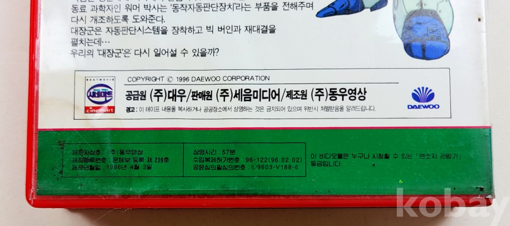 물 품 명 | 만화영화 / 프라사이버 대장군 제3탄(1,2) 총2편 / 1996년 / 대우 |