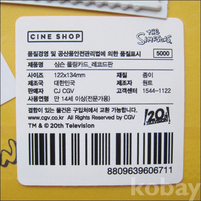 심슨 롤링카드 - 레코드판 (미사용) (390)