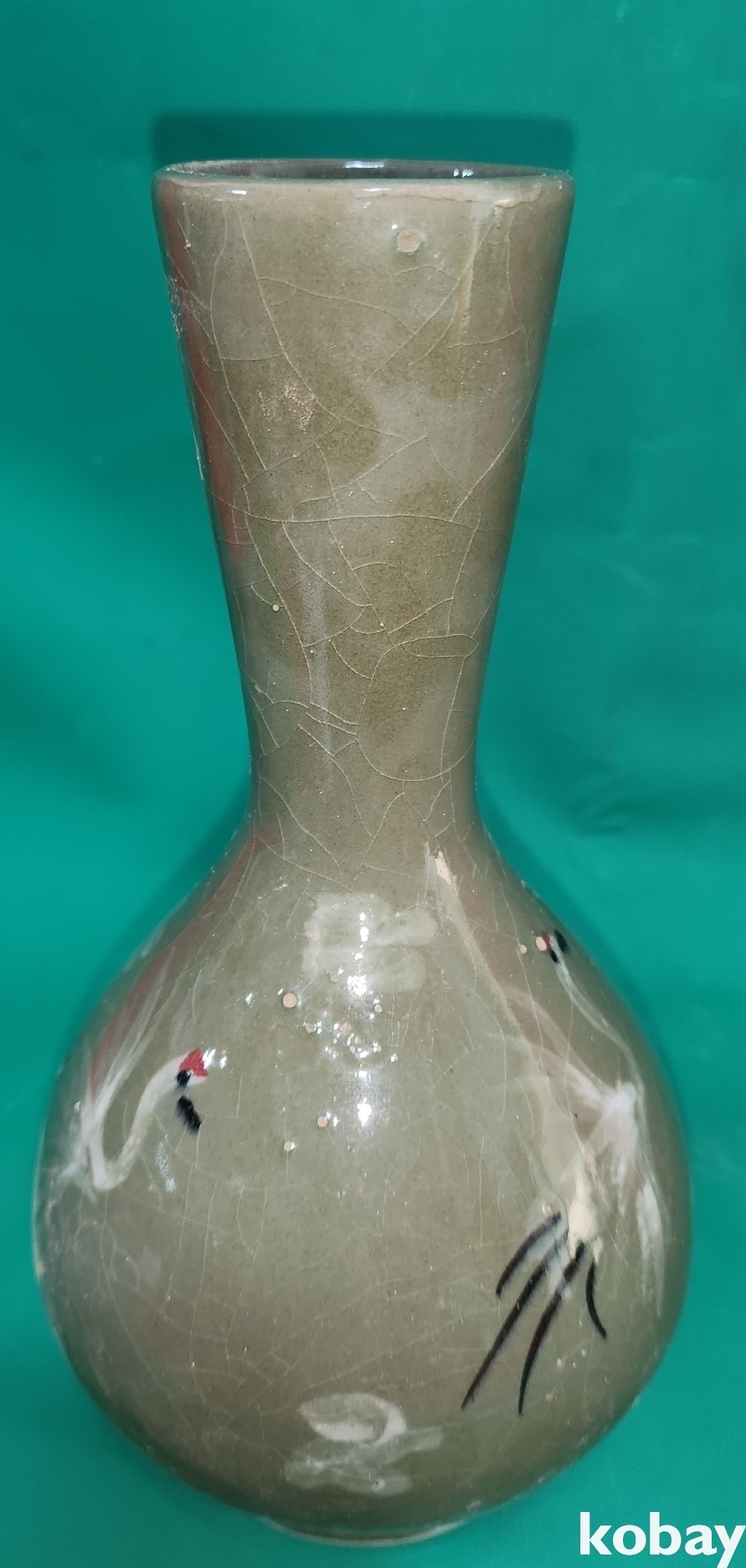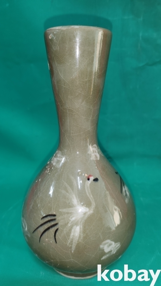 흑백 상감 청자 운학(雲鶴)문 병입니다,