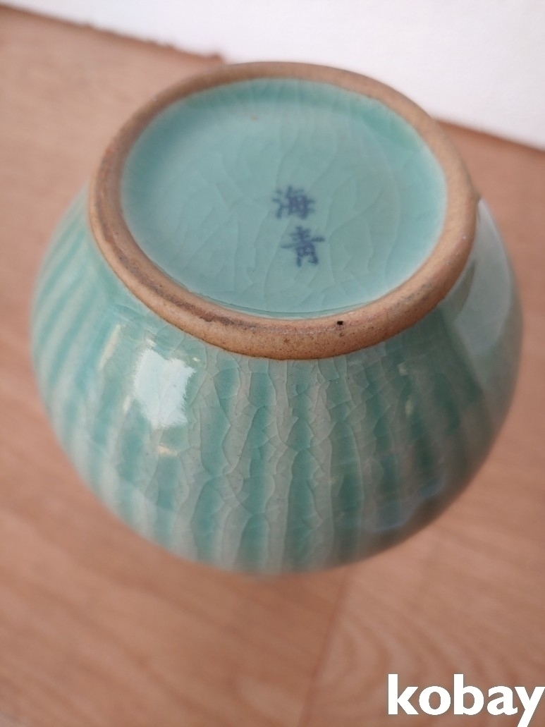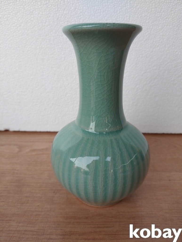 참외골 목긴 광구 청자 도자기 입니다.