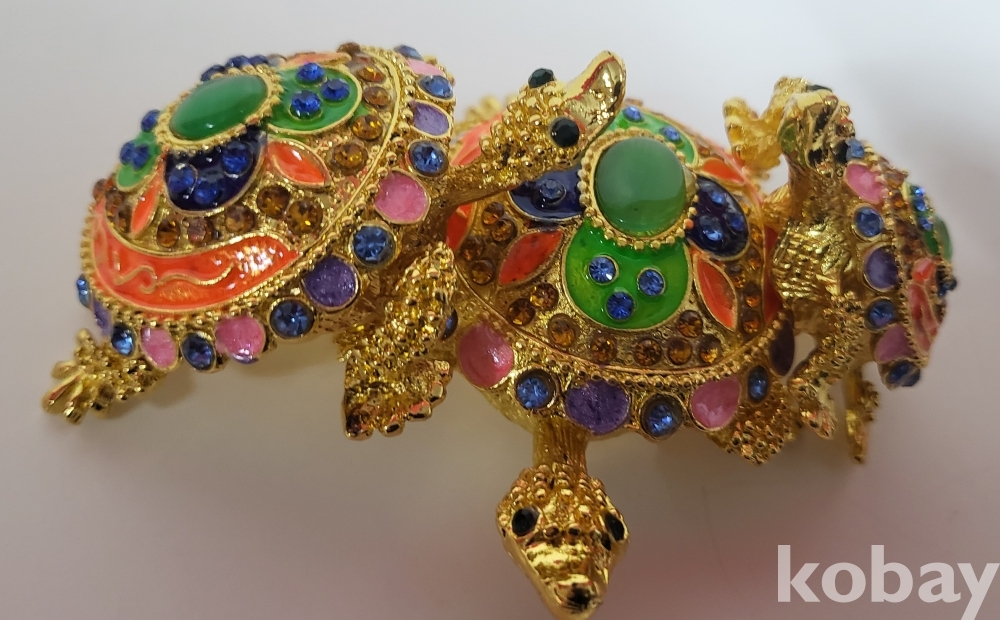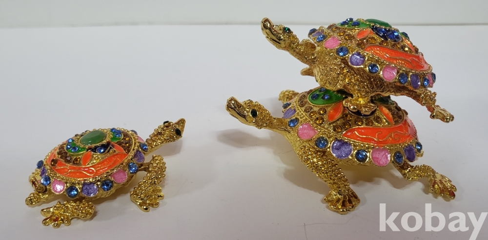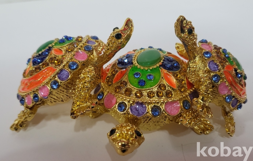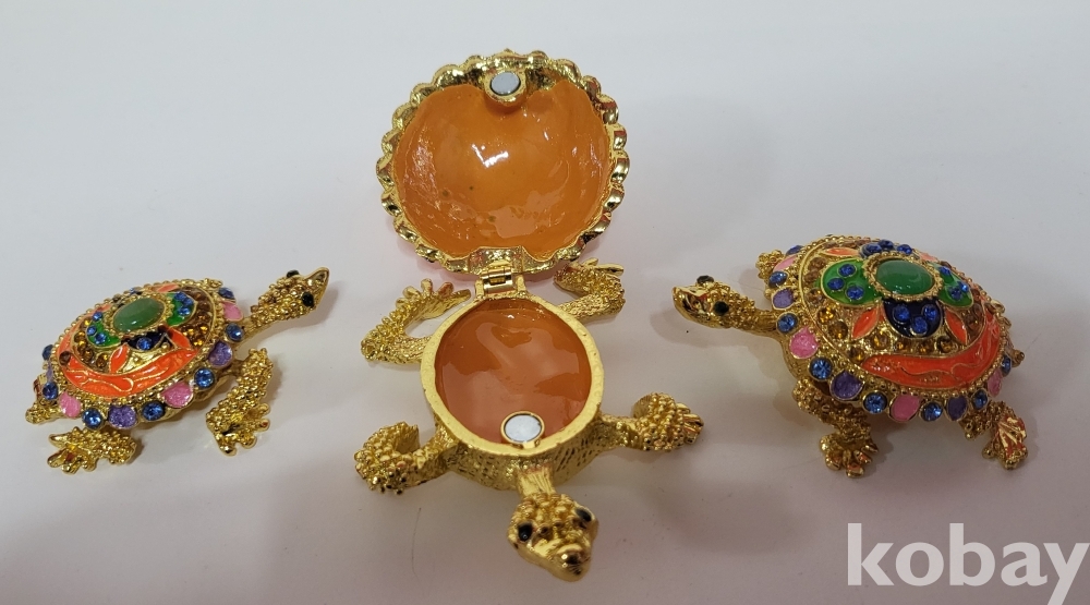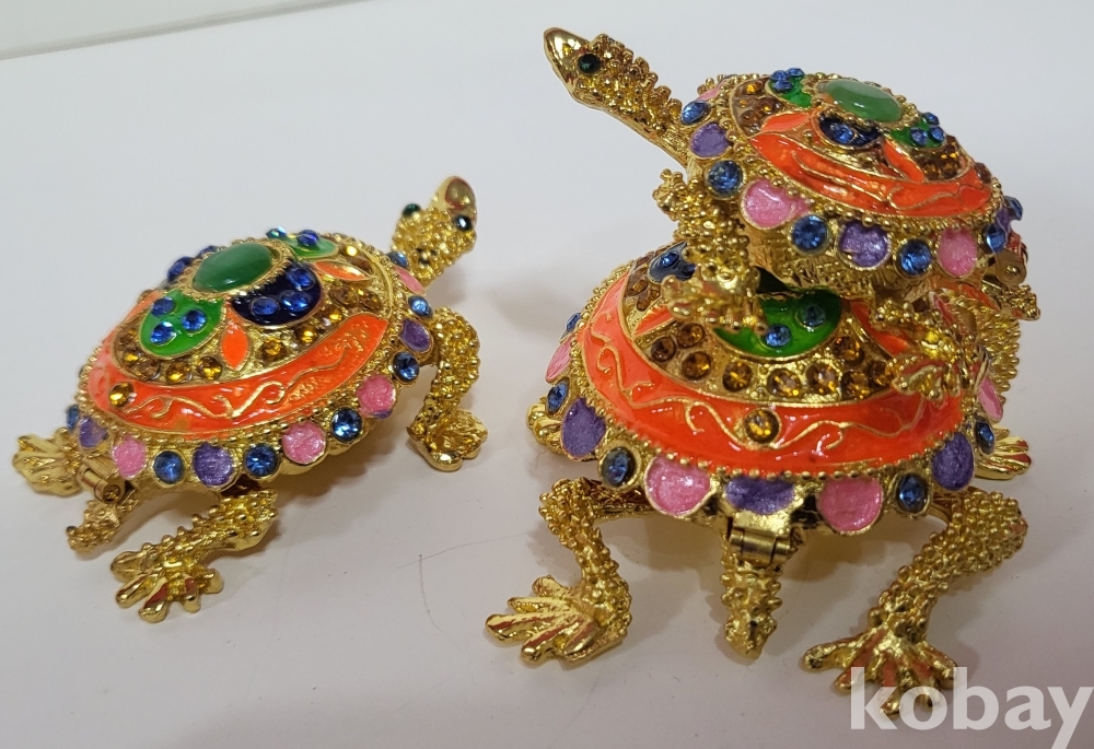 황동(黃銅)으로 완성된 거북이 형상 보석함입니다,