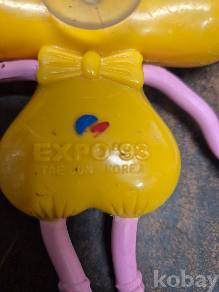 1993녕 대전 엑스포 꼼돌이 인형 자동차 유리창에 부착하고 사진을 넣을수 있는 인형 재질 플라스틱