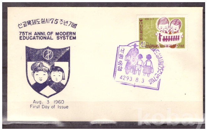 (초일봉피) 1960.8.3 신교육제도 실시 제75주년 기념 FDC (서울중앙 4293.8.3)
