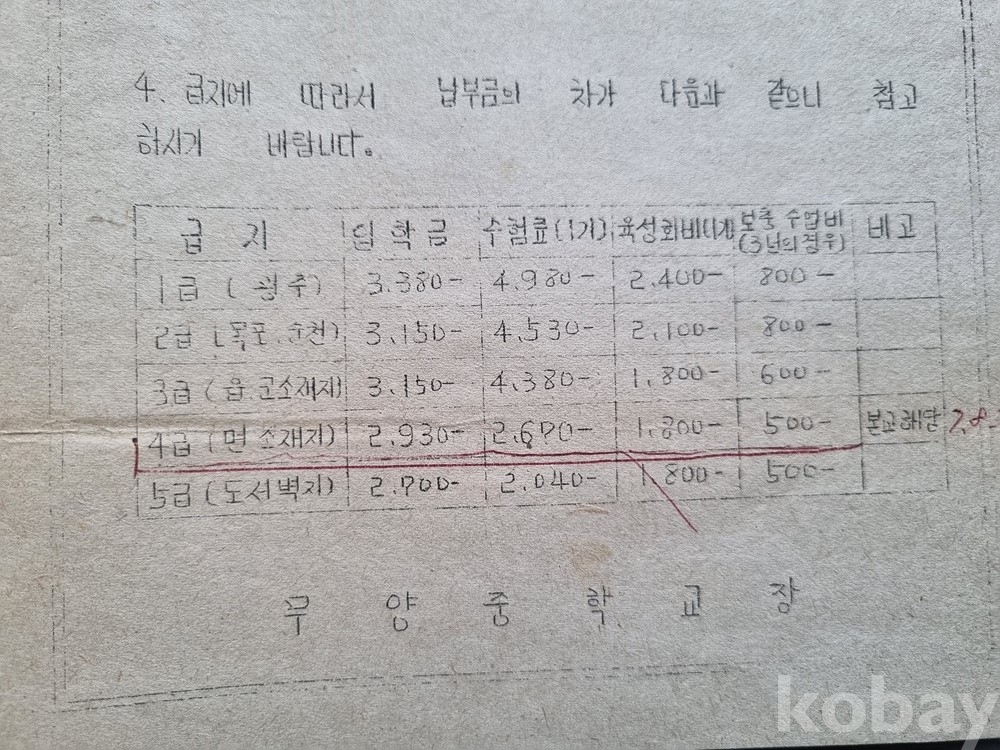 생활사/경제사 컬렉터: 1970년대 중반, 면 소재지 중학교의 입학금이 2,930원이던 시절의 물가를 증명하는 1차 사료입니다.