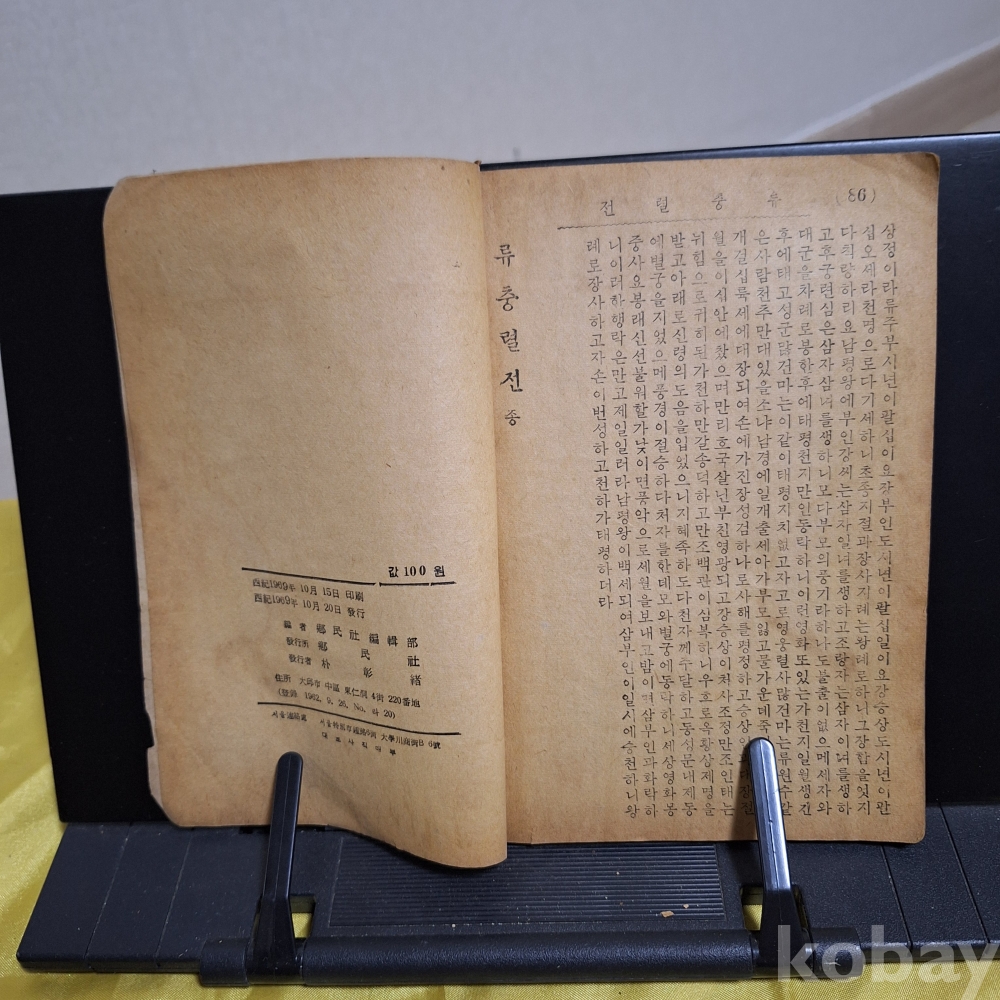 딱지본-<류충열전(劉忠烈傳)>- -1969년 향민사 발행. 사/1