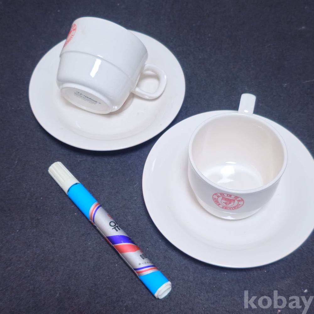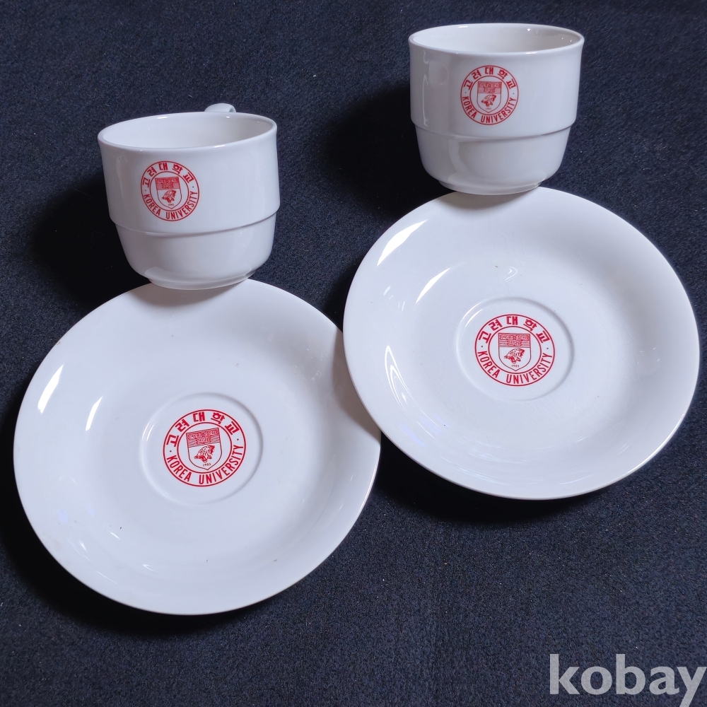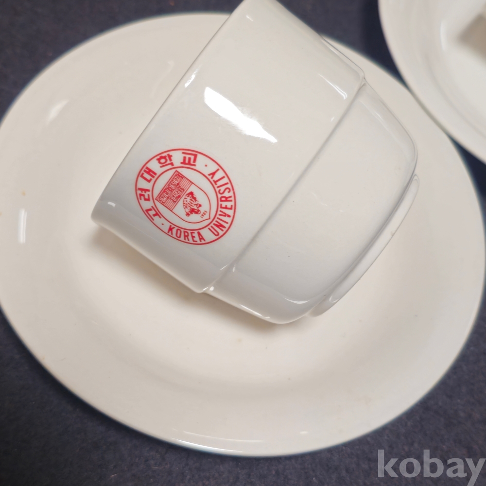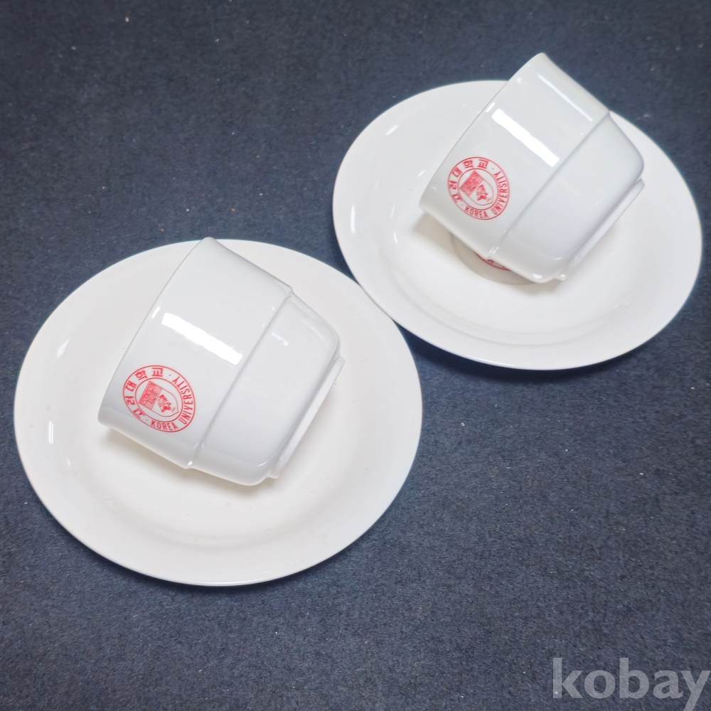 (((도자기커피잔))) 오래전 고려대학교 커플 도자기 커피잔/잔받침 (한국도자기)