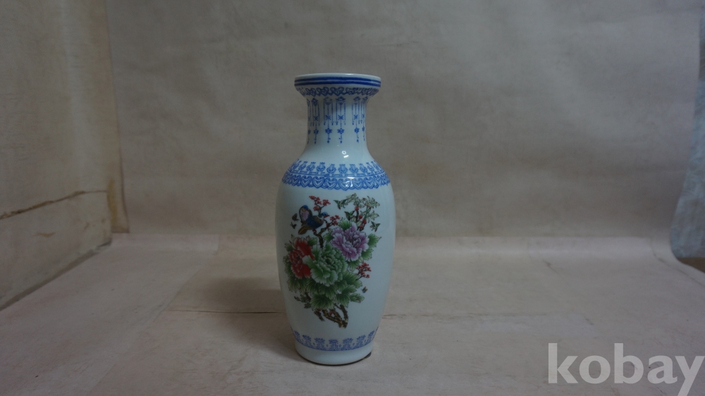 ◈◈백자../채색 진사.모란.화.조.접(나비)문,ㅡ''화병 한점◈◈