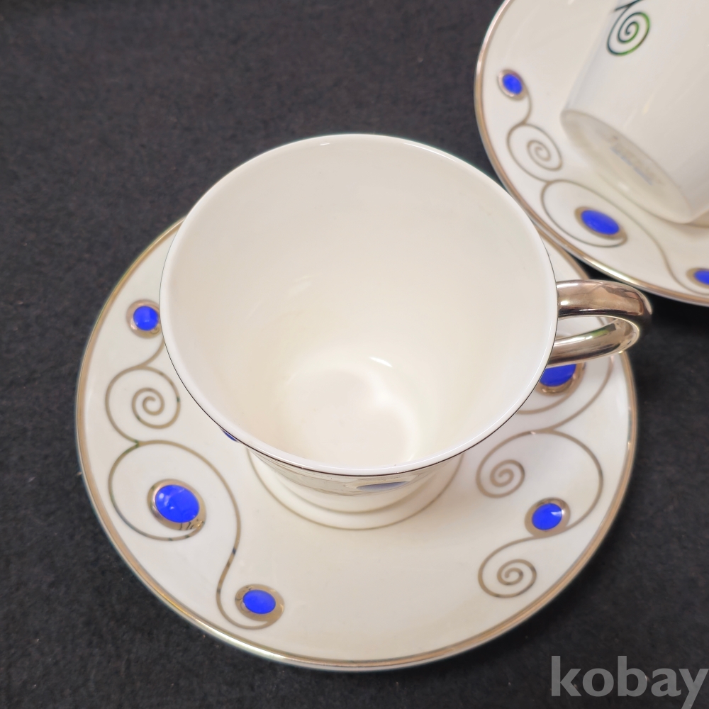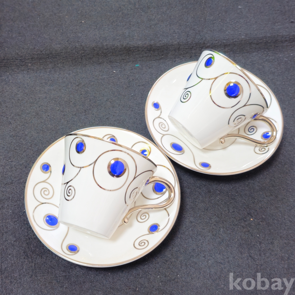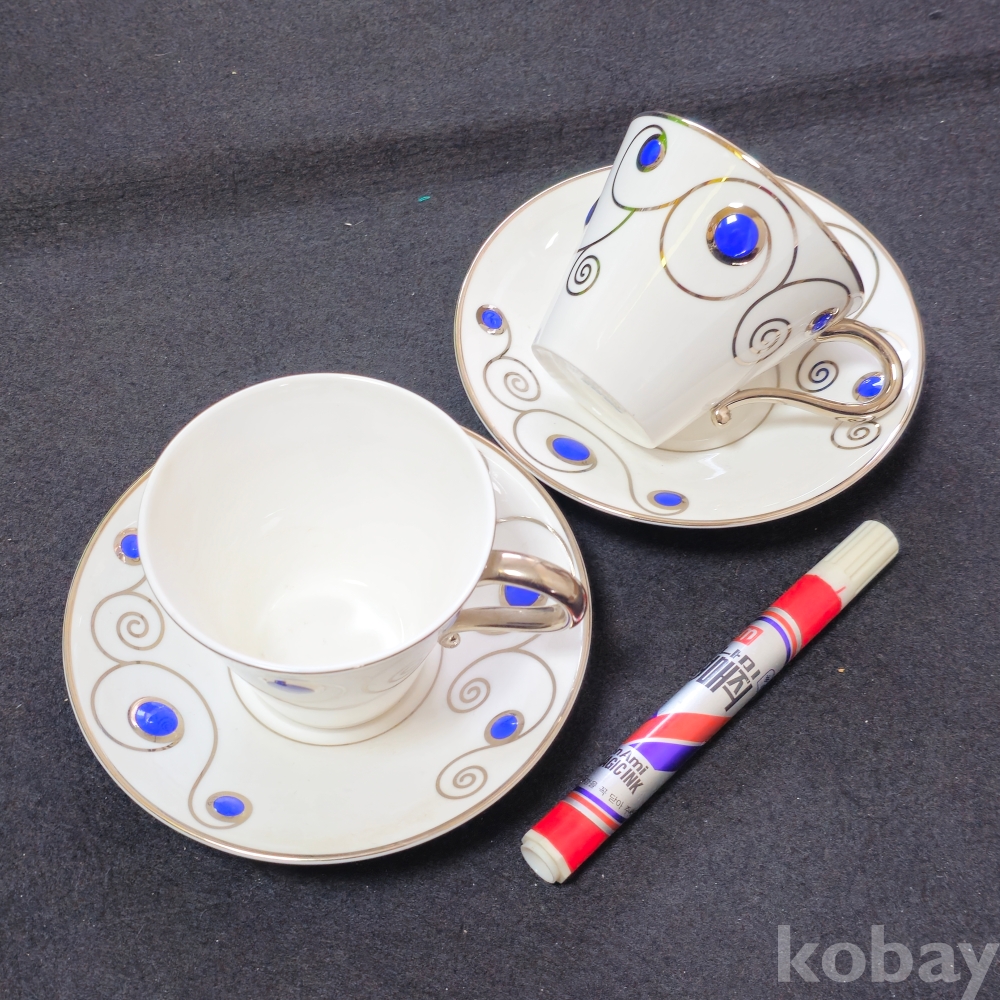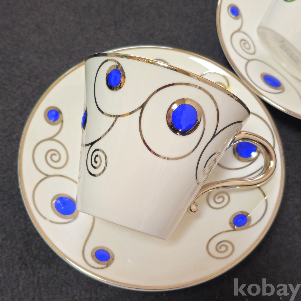(((도자기커피잔))) 오래전 한국도자기에서만든 디자인이 이쁜 커플 도자기 커피잔/잔받침 (BLUE SAPPHIRE)