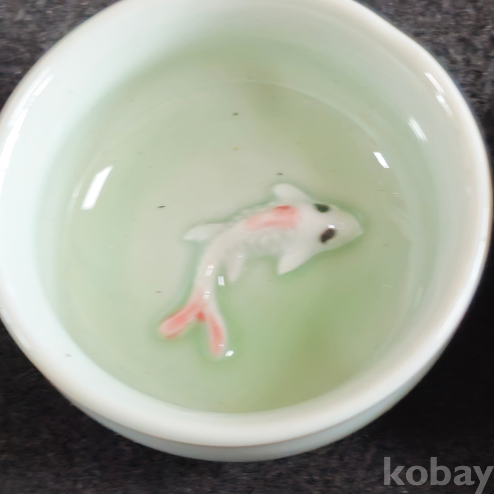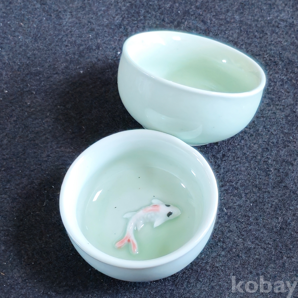(((술자료/술잔))) 이쁜 금붕어모습 도자기 술잔 2개