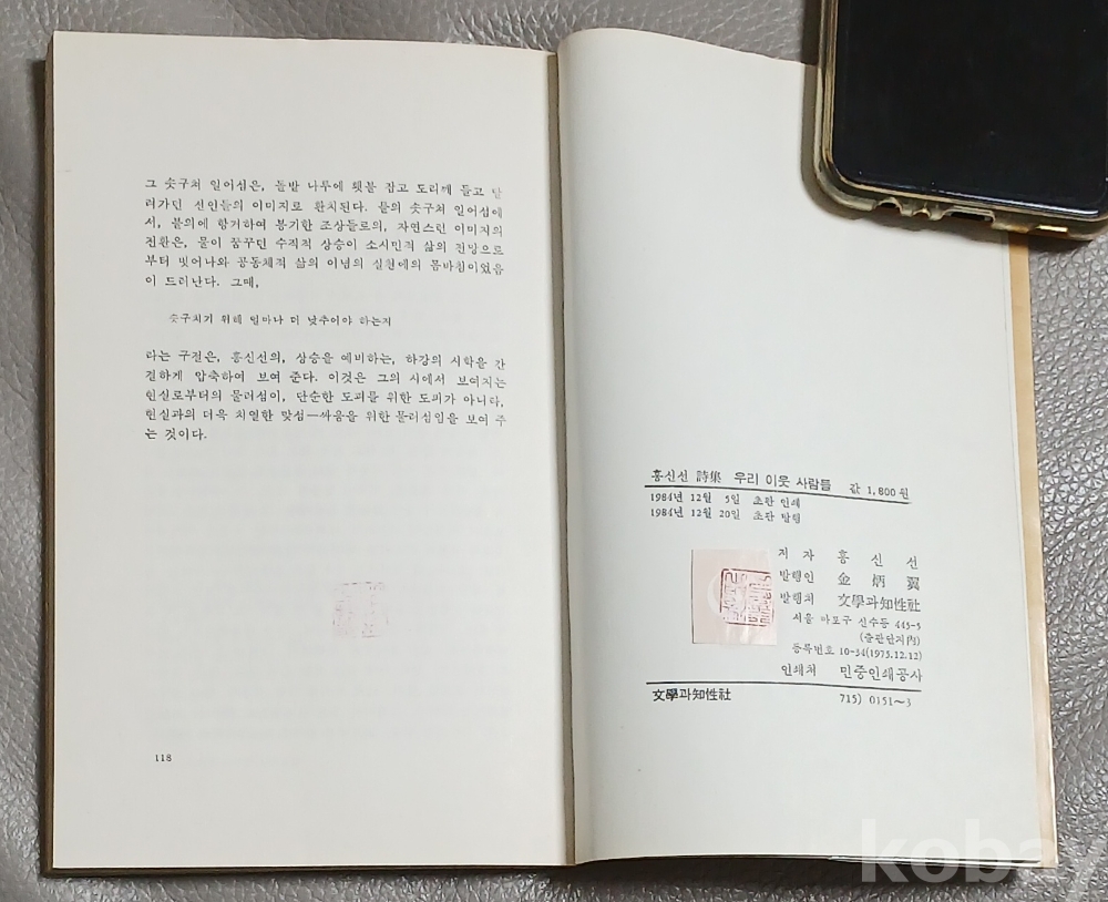 [초판본시집] 우리 이웃 사람들 - 홍신선 1984년초판발행