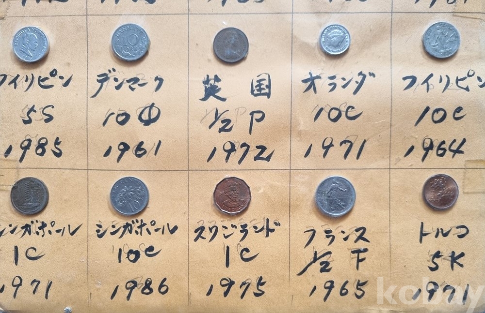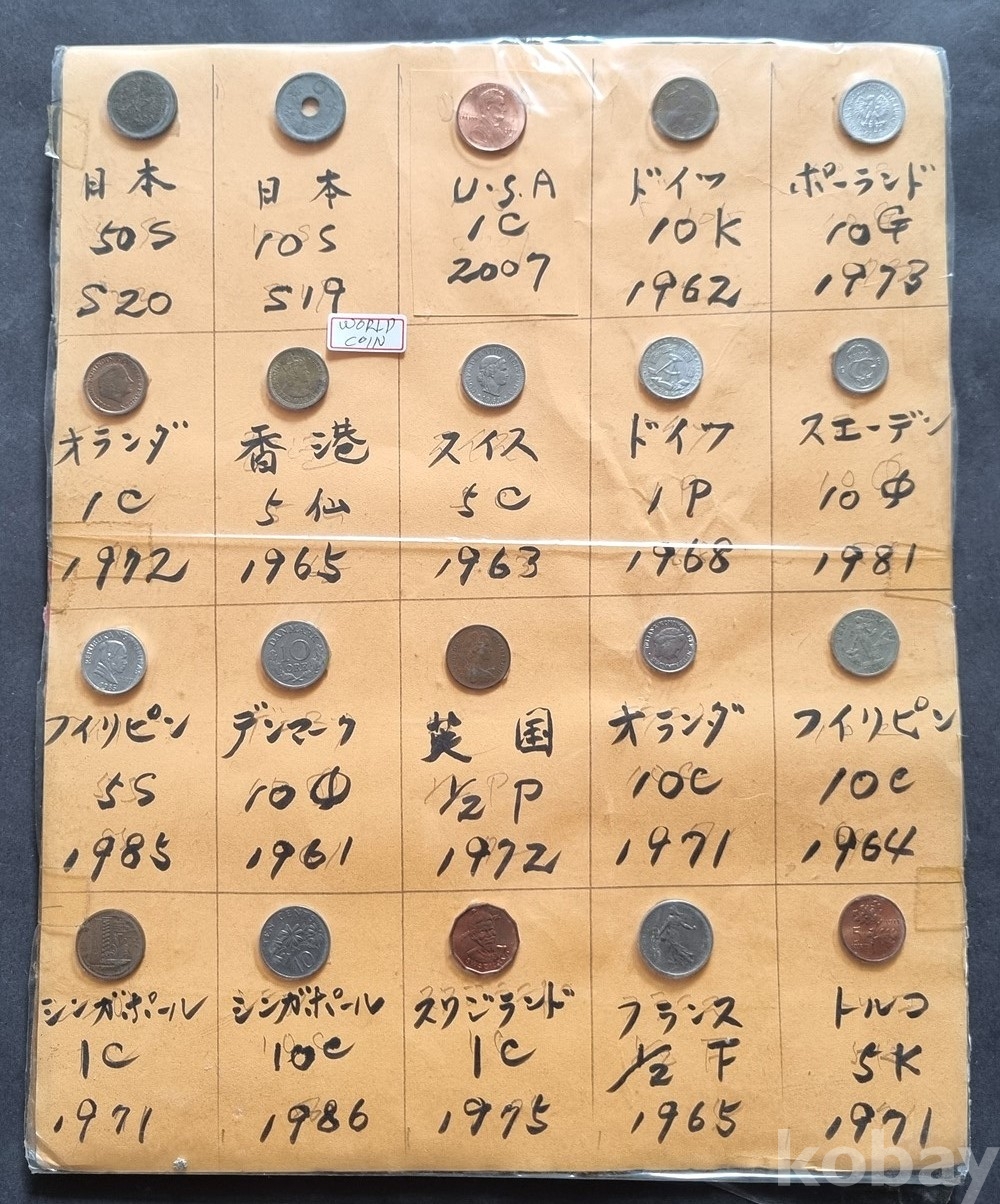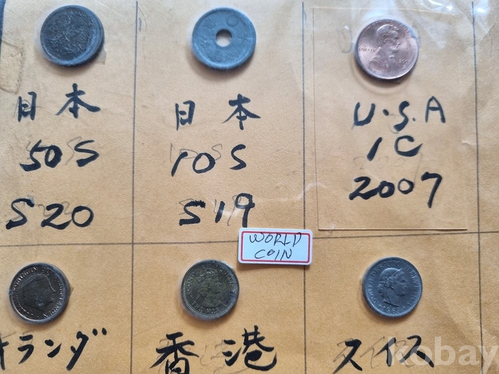 이미지상 동전들이 비닐 안에 들어있어 빛 반사가 있을 수 있습니다. "실물 사진이며, 연도와 국가가 명확히 분류되어 있습니다"