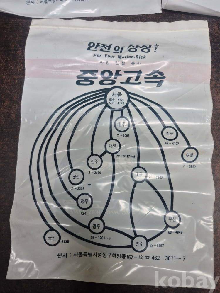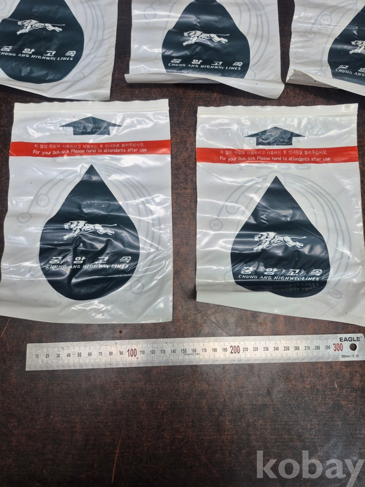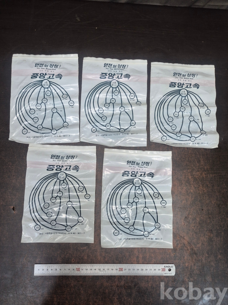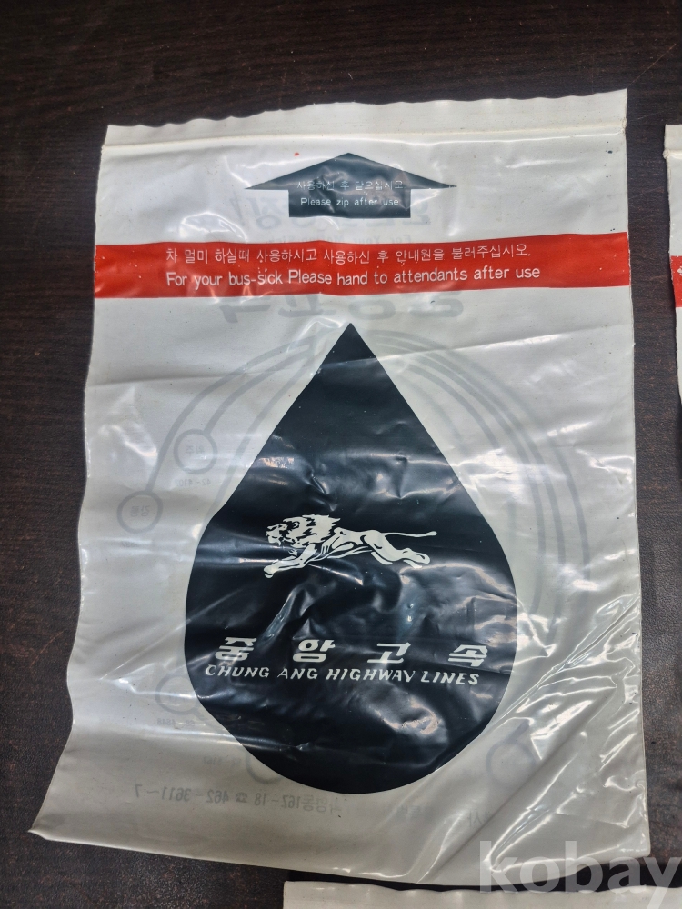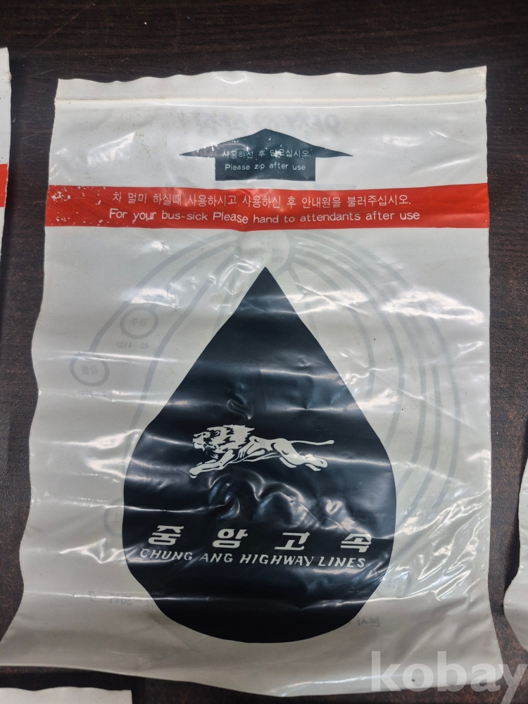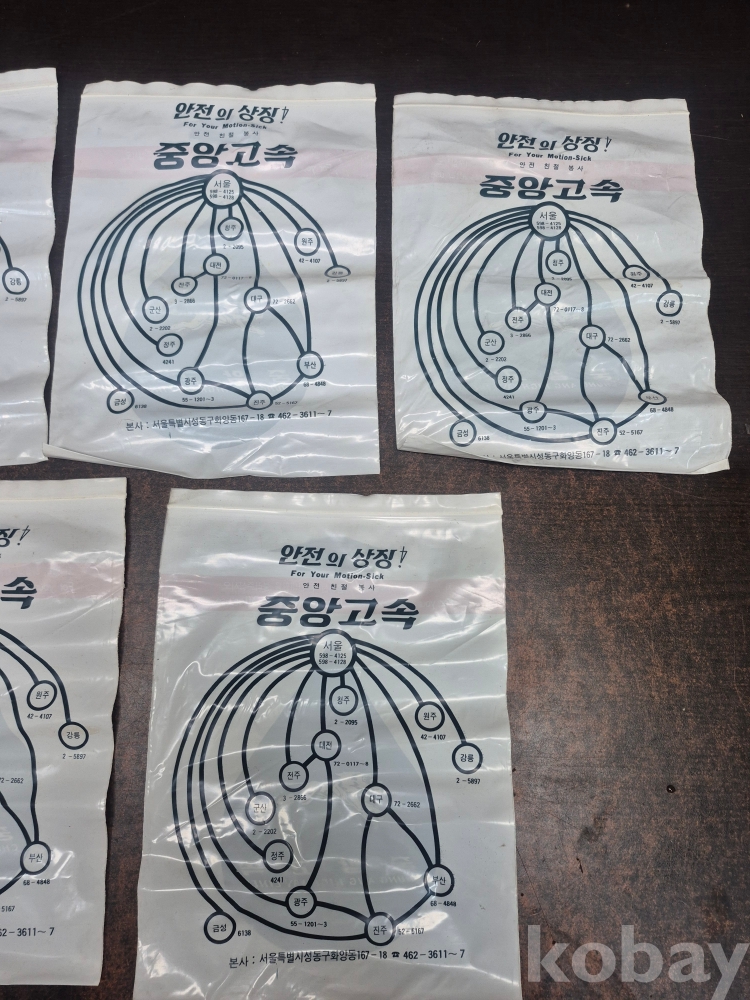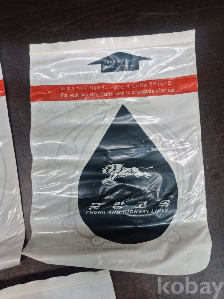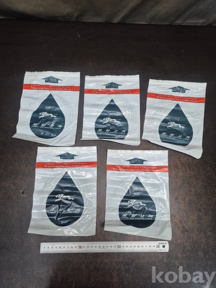 1980년 중앙고속 버스 버스안에서 멀미 구토용 봉투 5점 미사용품 일괄 17*23.5*0.2
