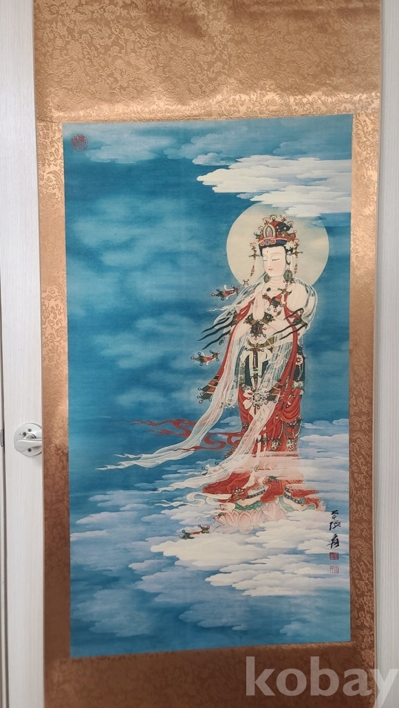 매우 섬세하고 의미가 담긴 족자화 입니다 비단천에 담겨있고 그림과 작품을 구불할수 있는 간단한 설명이 있는 표식도 있습니다 사이즈도 크고 상태 양호한 족자 작품 분양합니다