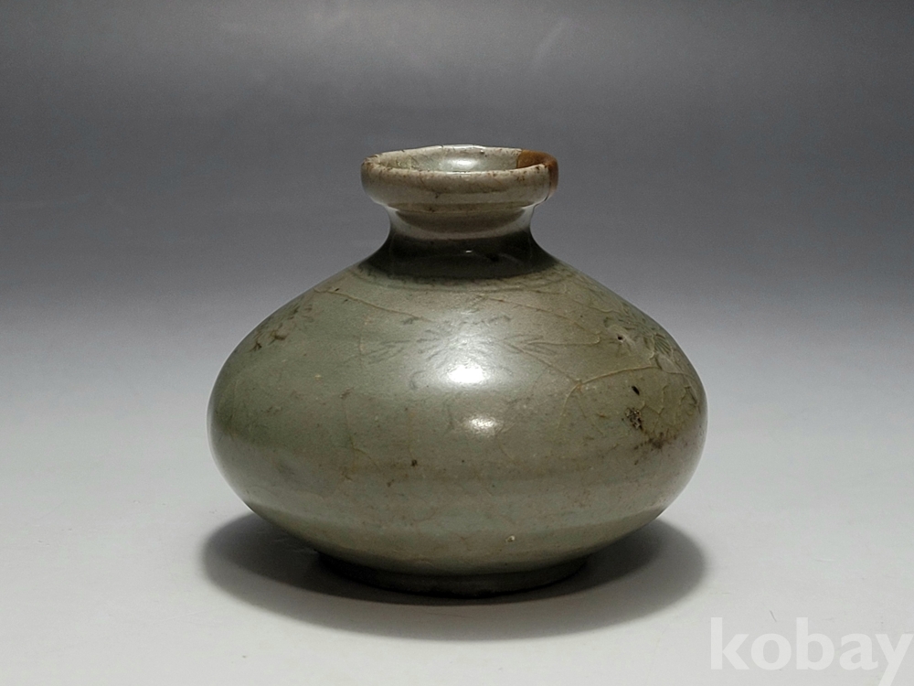 ★ (일본 현지 발송, 주의사항 필독)고려시대(高麗時代) 청자 음각당초문 유병(油瓶 花瓶). 높이 : 6.5cm 폭 : 8cm ★