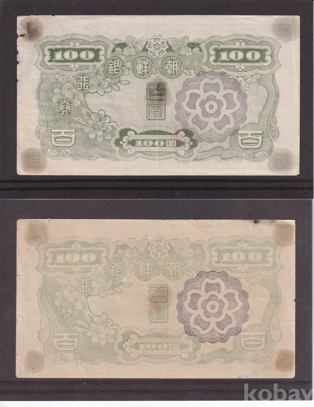- 조선은행 무 백원권은 판번호별로 2종류 원지로 발행을 하였습니다.