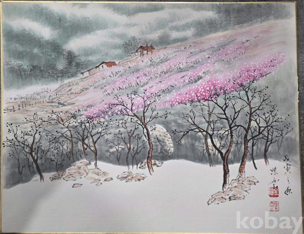 수묵채색 산수화 (봄 풍경)