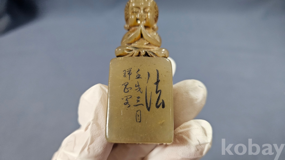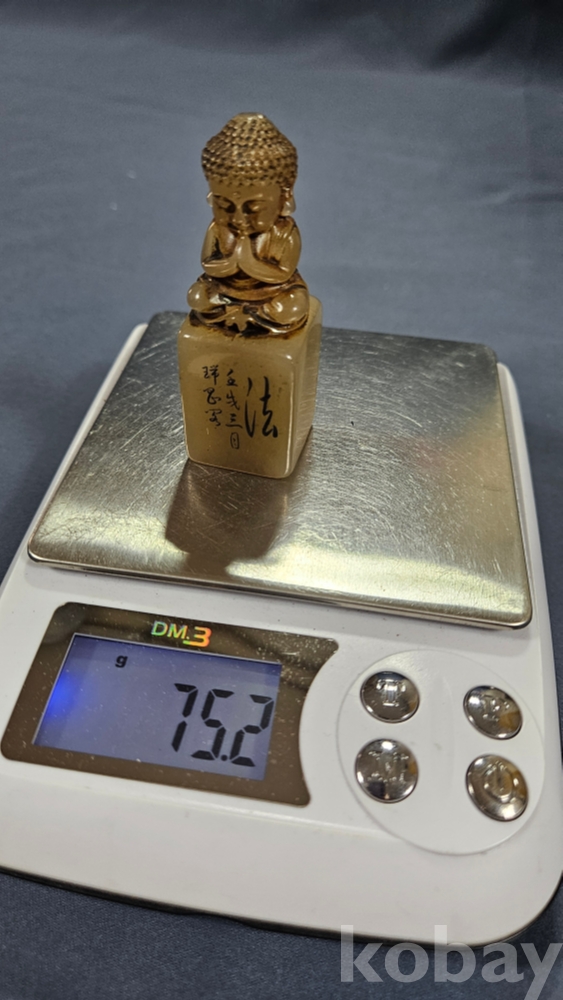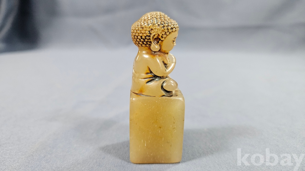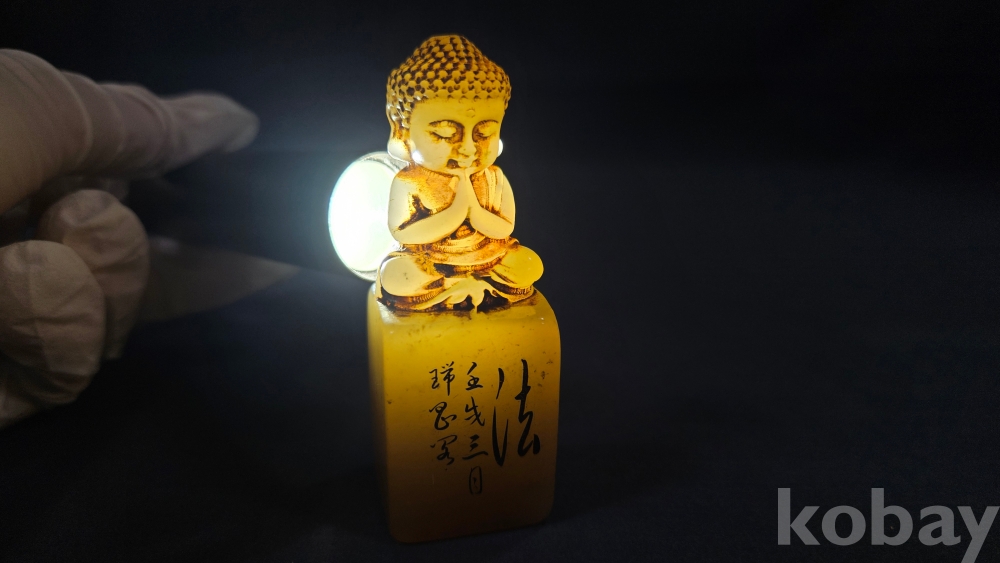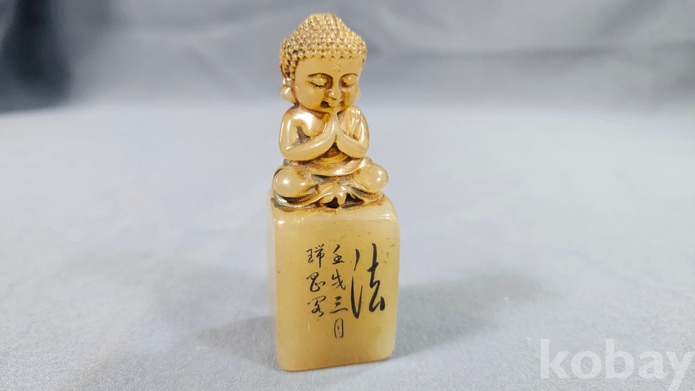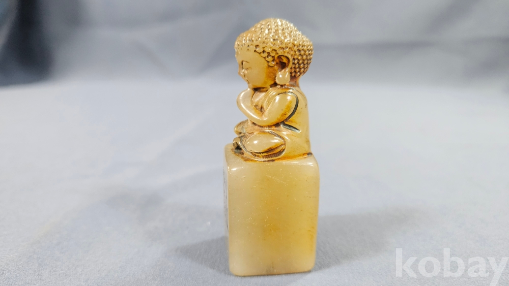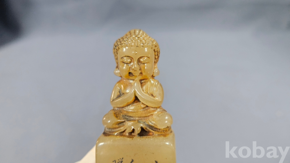 귀엽게 조각이 된 합장하고 계신 모습의 부처님 옥 도장 입니다.