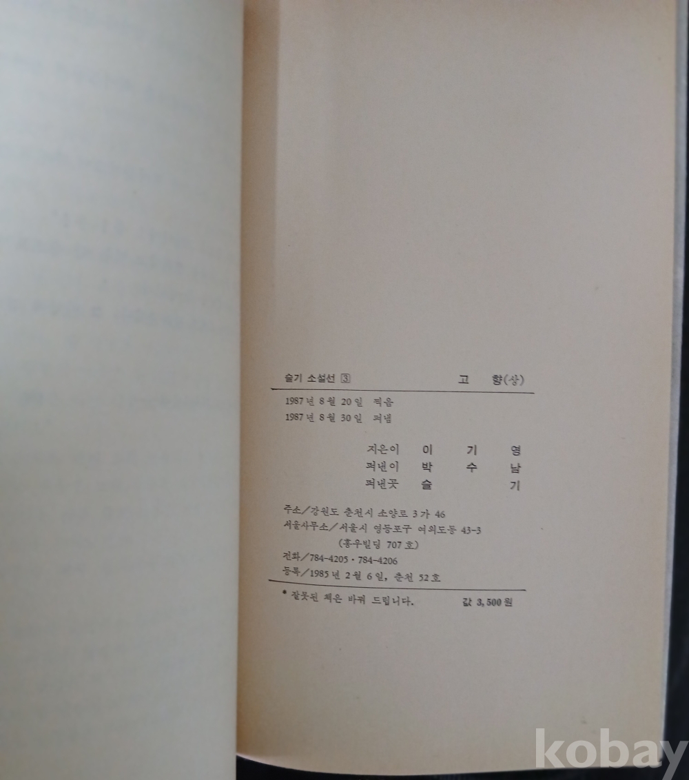 412. 李箕永 長編小說, 고 향 上.