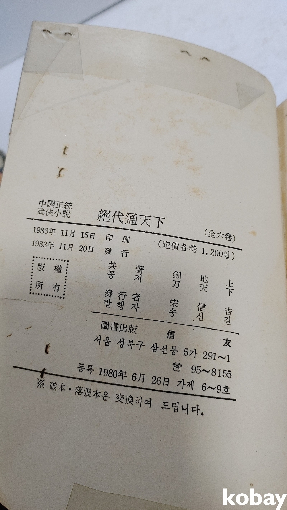 1983년 절대통천하 무협지 입니다